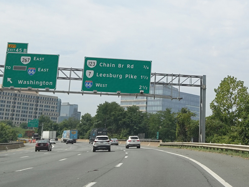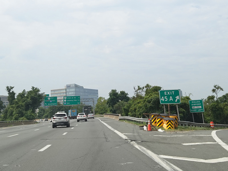 Exits 45A-B are for the Dulles Toll Road (VA 267) and I-66 east.