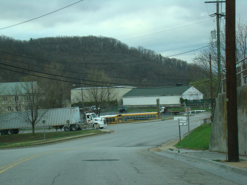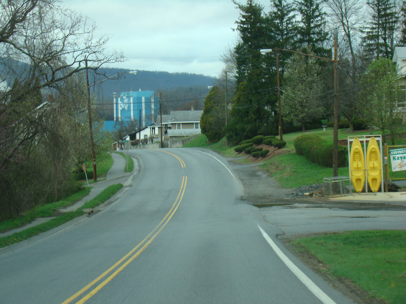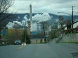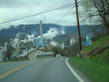 North Alleghany Avenue runs north through Covington as a two-lane undivided road. There is a paper mill on the left along this stretch.