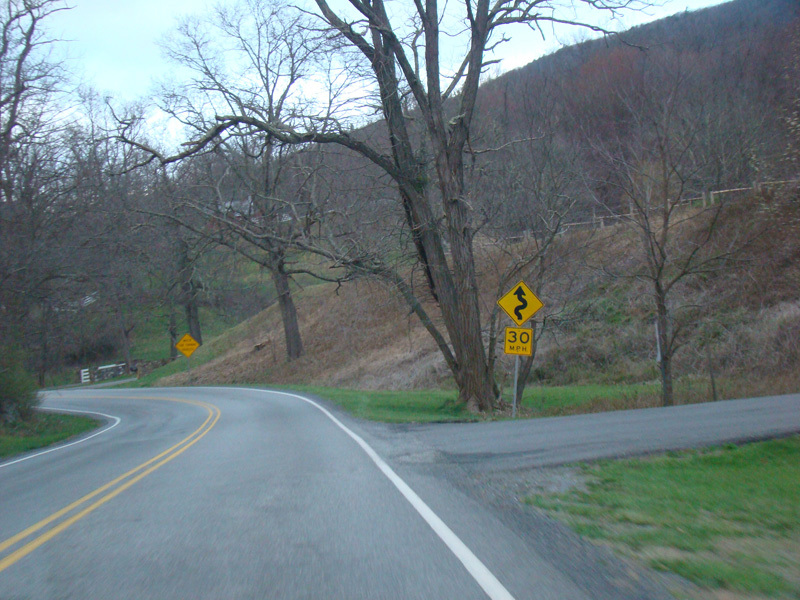 There is a junction with Mountain Valley Road (VA 39). Take the first left to go west or the second right to go east.