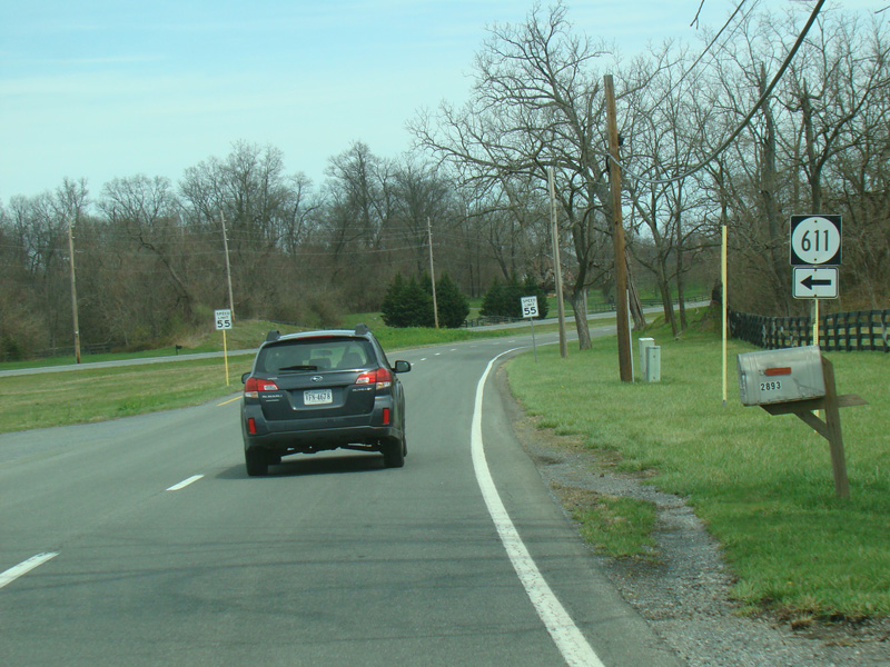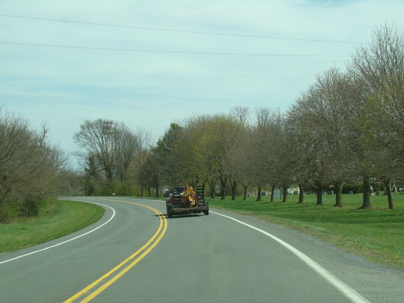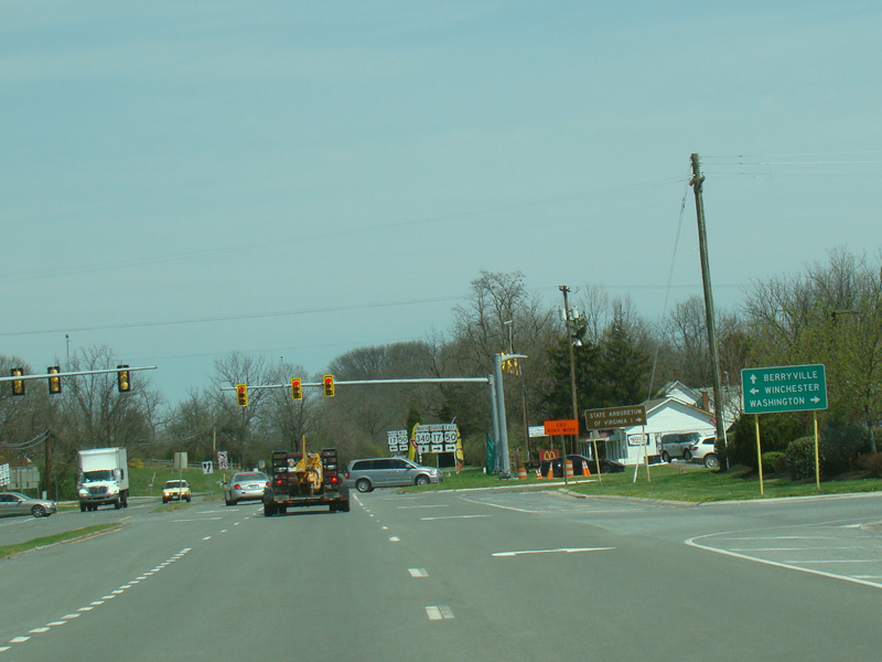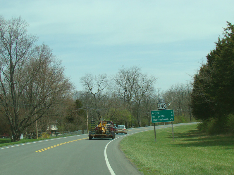 Just before the state line, the median ends and Lord Fairfax Highway narrows down to two lanes again. US 340 continues straight ahead into West Virginia as Berryville Pike.
