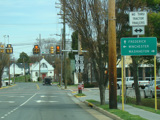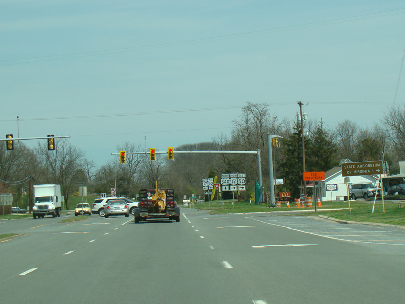 There is a traffic light at John Mosby Highway (US 17/US 50). Turn right to go east or left to go west.