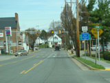 Lord Fairfax Highway continues north, heading out of town. There is a traffic light at Mosby Boulevard.