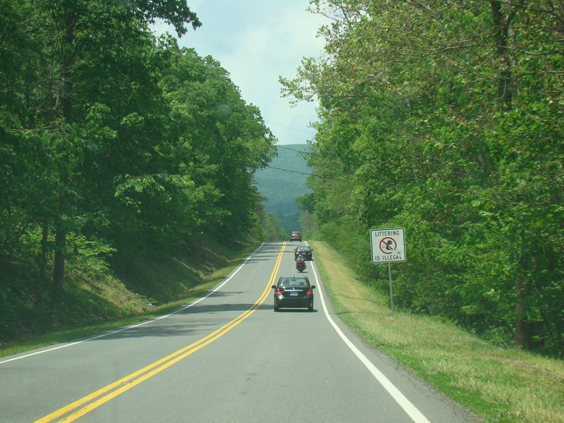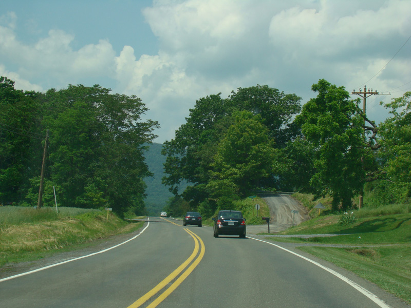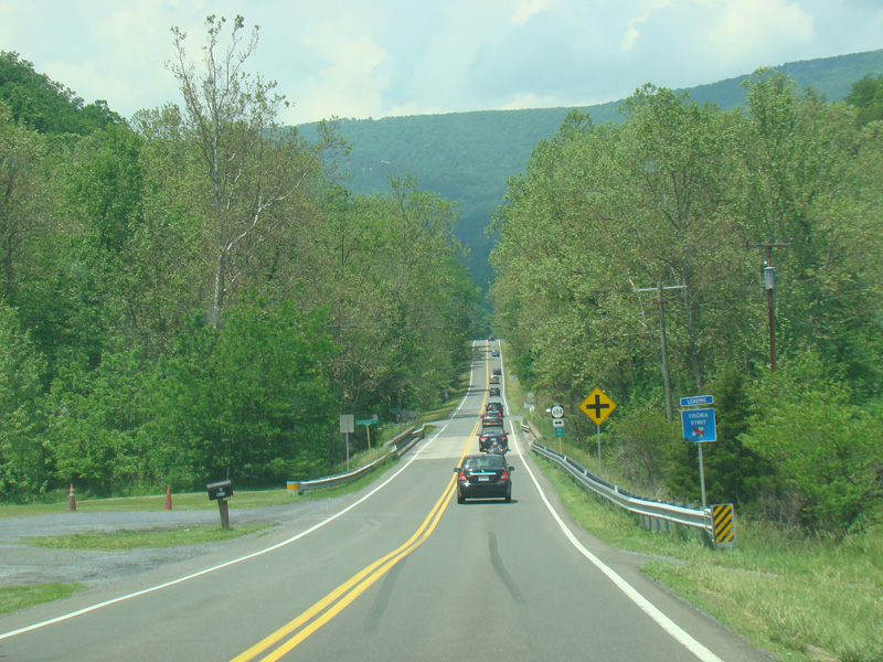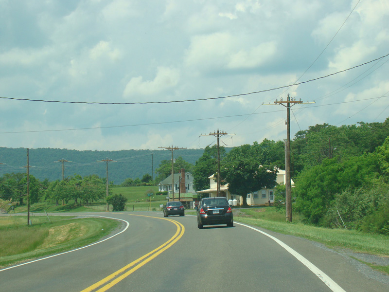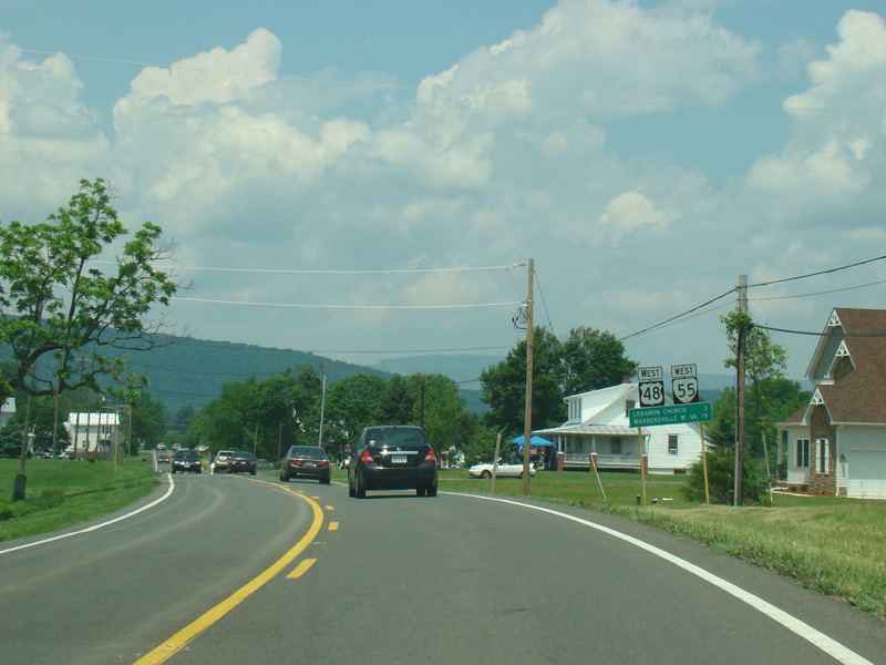 John Marshall Highway takes on the US 48 designation at its interchange with I-81 in Strasburg. It is multiplexed with VA 55 and runs west toward Great North Mountain and eventually ascending the mountain. The West Virginia state line is at the summit. VA 55 becomes WV 55 at the state line.