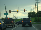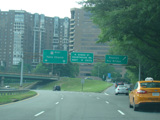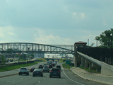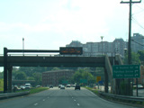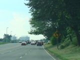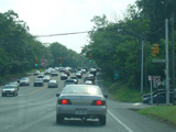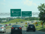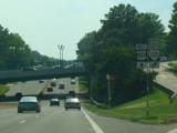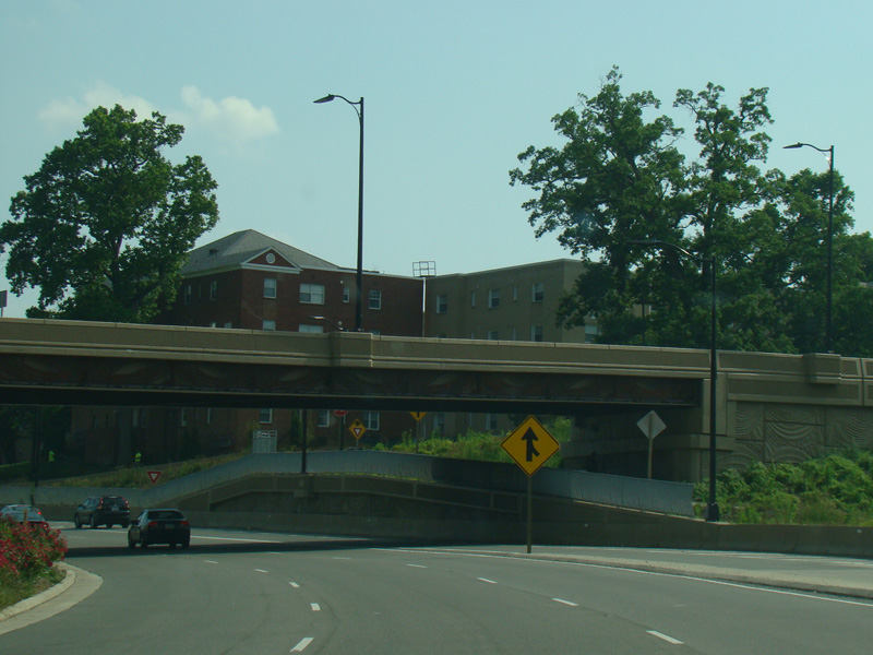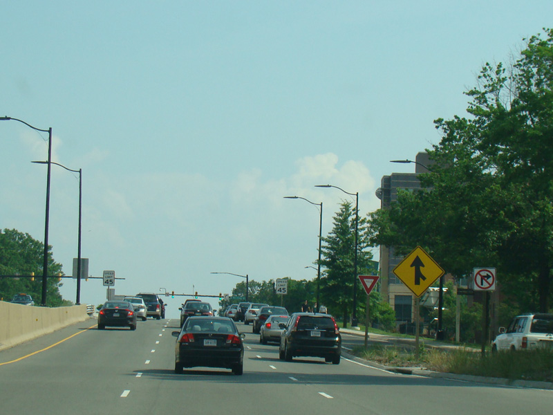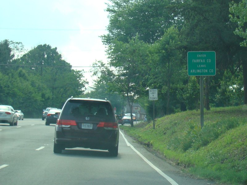 The first section of US 50 in Virginia is a large divided highway with service roads called Arlington Boulevard. It has a mixture of grade-separated interchanges and traffic lights. There is an exit for Rosslyn and the Key Bridge (US 29).