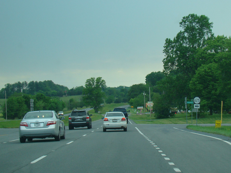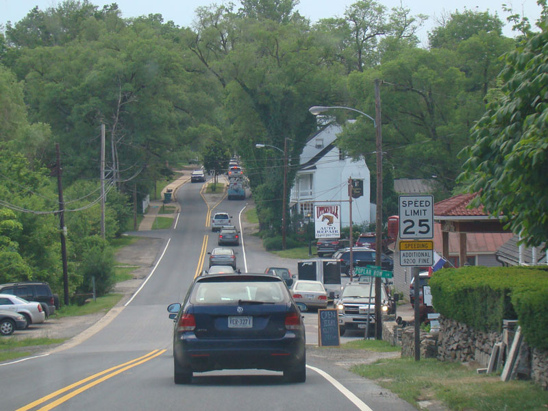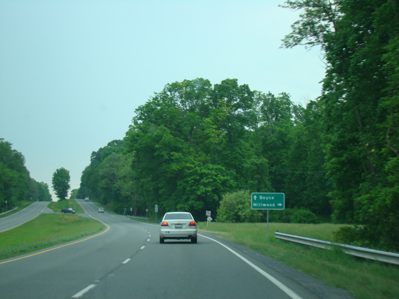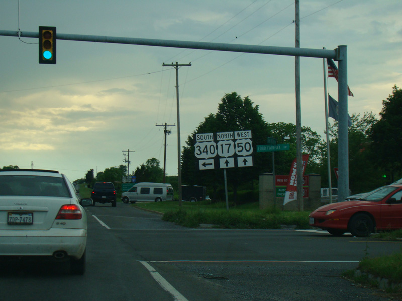After a short distance, there is a traffic light at Lord Fairfax Highway (US 340). Turn right to go north or left to go south.