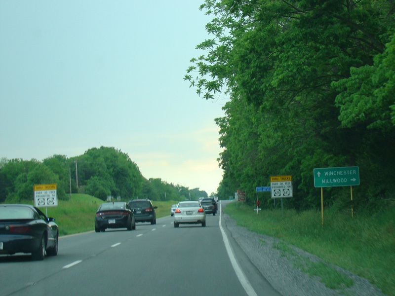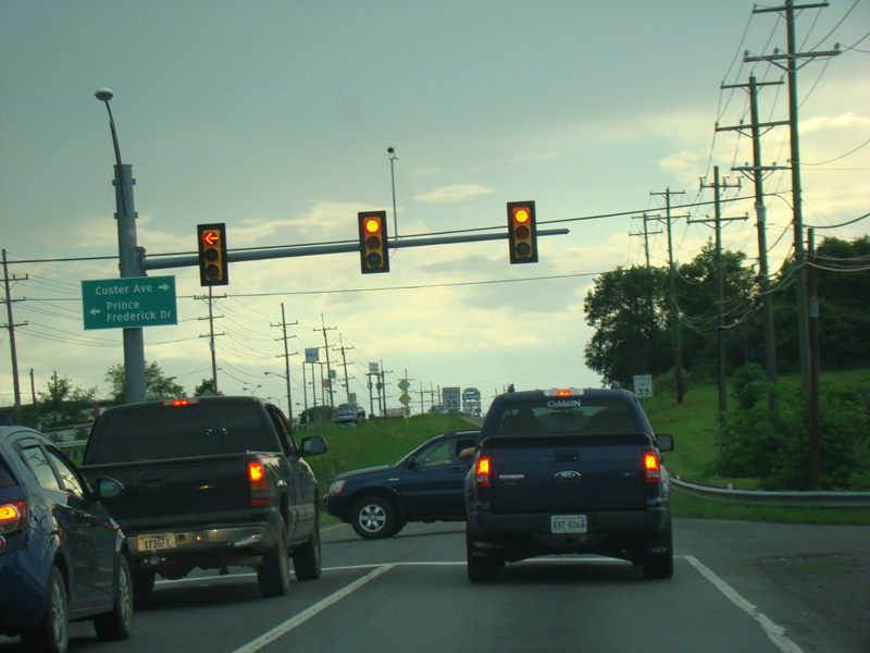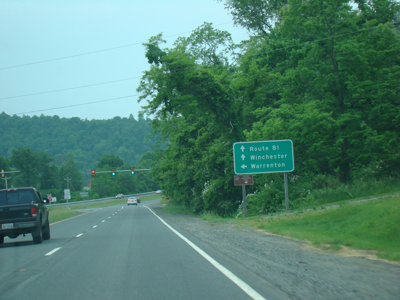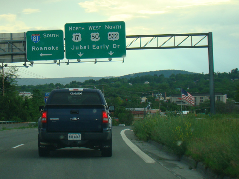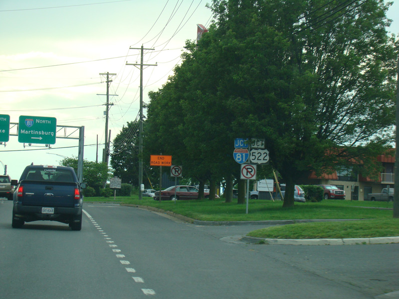 There is a pair of traffic lights at I-81 and US 522. Turn left onto Front Royal Pike at the first light to go south on US 522. Turn right at the first light to go north on I-81 or left at the second light to go south. Northbound US 522 is multiplexed with US 17 and US 50 straight ahead.