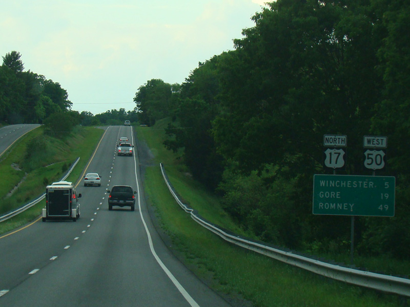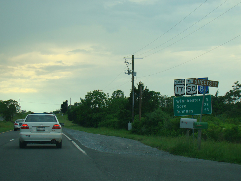 There is a traffic light at South Cameron Street (US 11). Turn right go north and to stay on US 17/US 50/US 522, which is multiplexed with US 11 beginning here. To go south on US 11, continue straight ahead onto Gerrard Street.