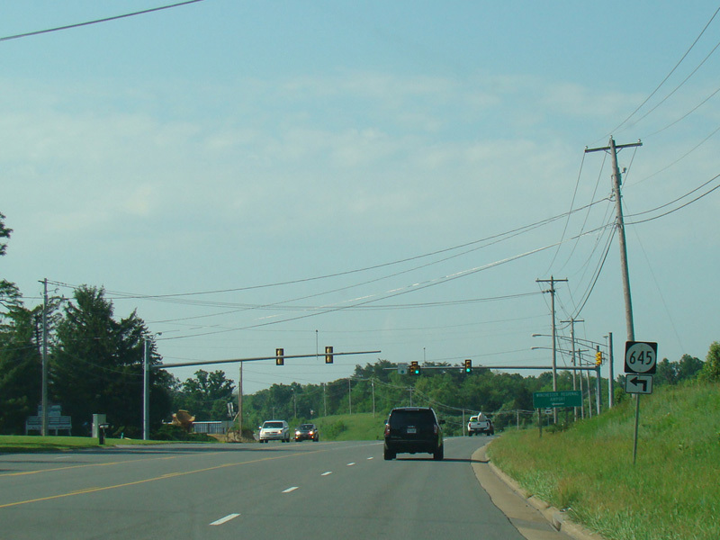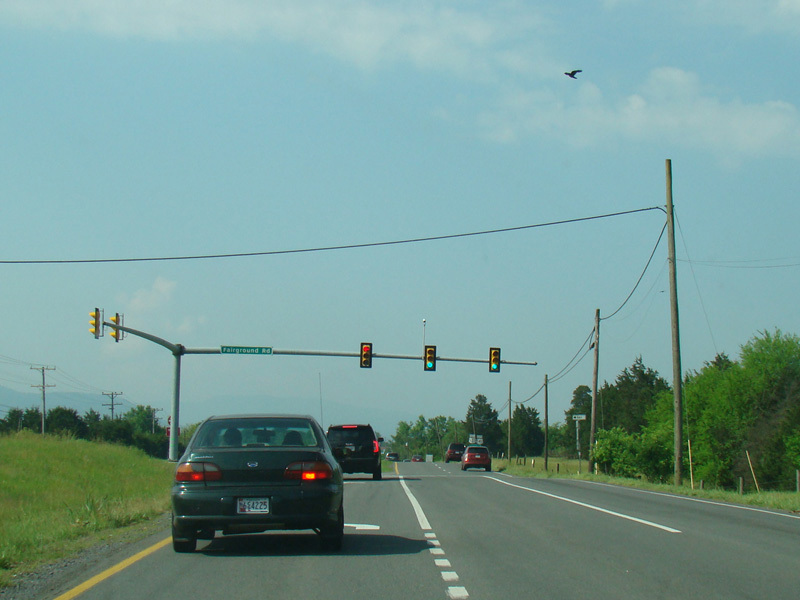 Winchester Road runs south as a four-lane divided highway. There are traffic lights at Lake Frederick Drive (SR 1434), Fairground Road (SR 661), Toray Drive (SR 720), Shadows Drive, Rockland Road (Truck SR 658), and Reliance Road (SR 627).