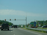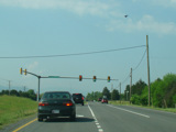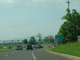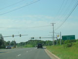 On the other side of the bridge, there is a traffic light at VA 55. Turn right onto Strasburg Road to go west. Eastbound VA 55 is multiplexed with US 522/US 340 straight ahead.