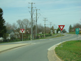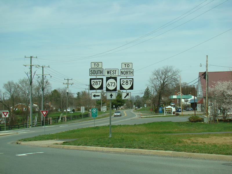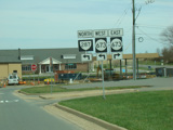 Berlin Turnpike splits into one-way roadways around the Town Square. There is access to East Broad Way (SR 673) and West Broad Way (SR 673).