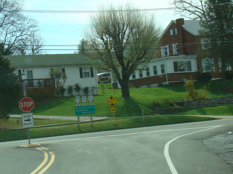 John Marshall Highway ends at a stop sign at North Massanutten Street (US 11). Turn left to go north. Turn right to go south and to continue east on VA 55.