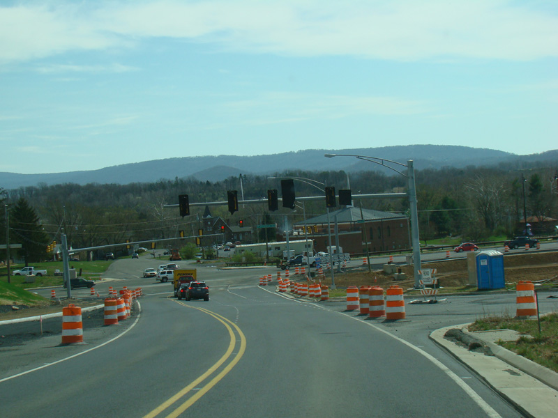 VA 55 is multiplexed with US 11 for three blocks to the south along North Massanutten Street.