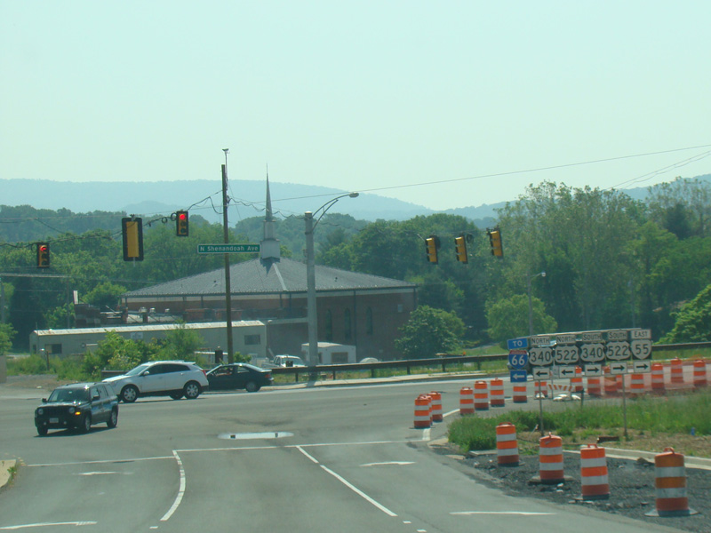 Strasburg Road ends at Shenandoah Avenue (US 522/US 340). Turn left to go north. Turn right to go south and to stay on VA 55.