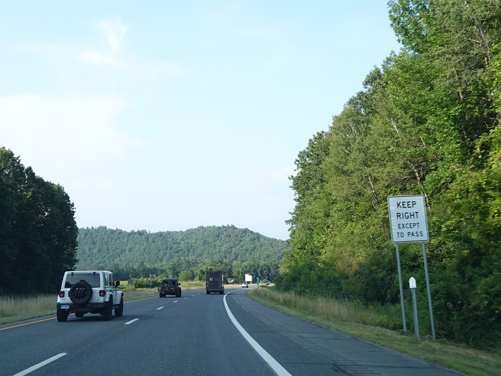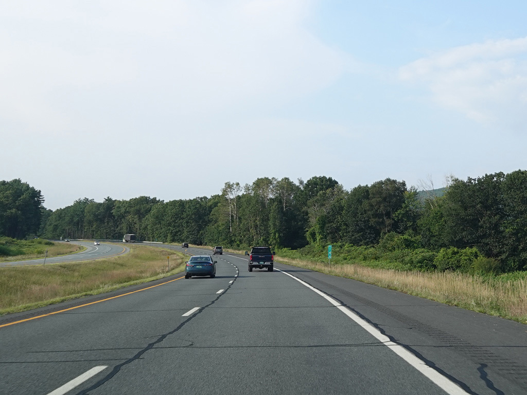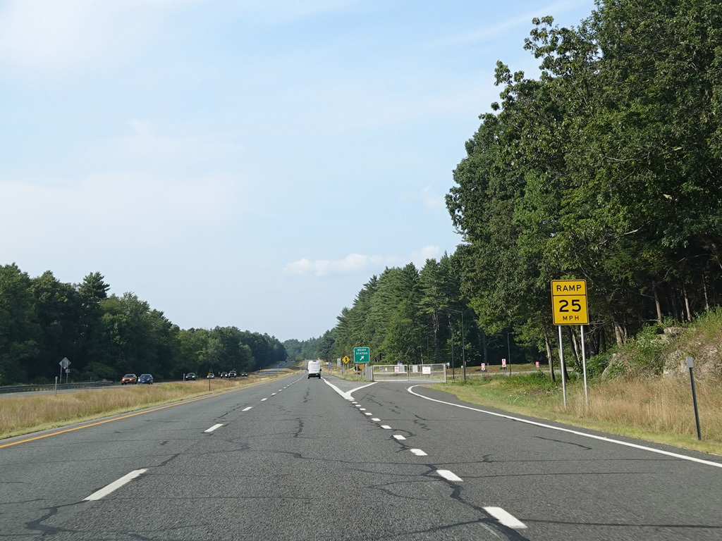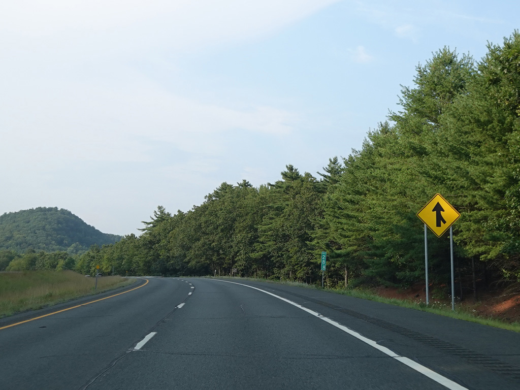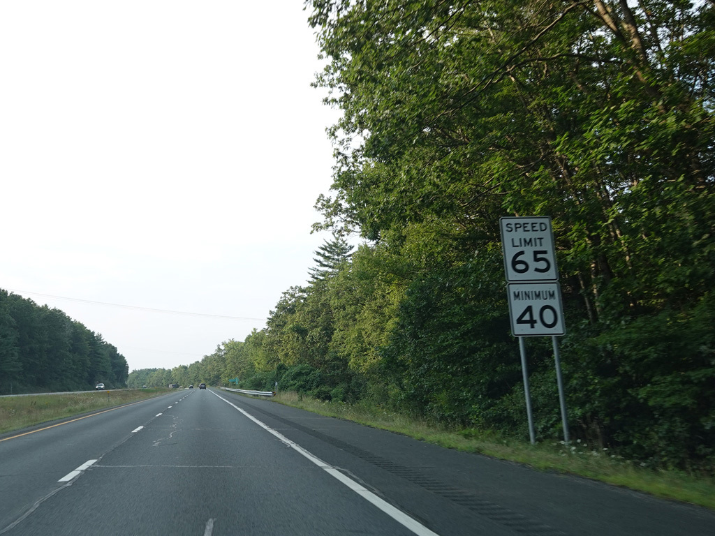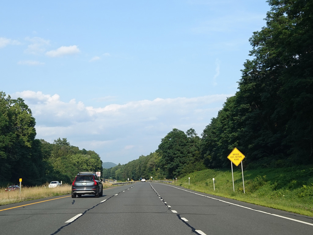 There are no exits for the first few miles in the state. There is signage in this area for various state laws, such as those on seatbelts, drunk driving, and cell phone use.