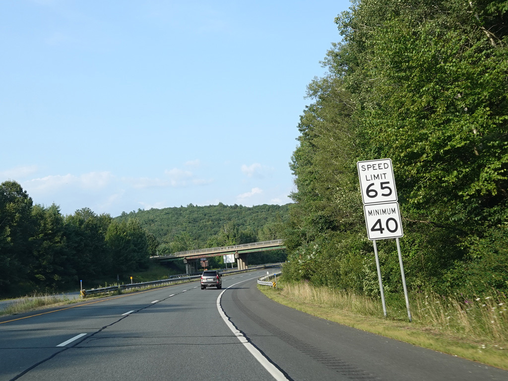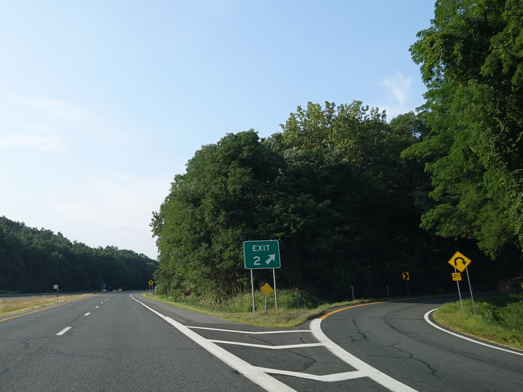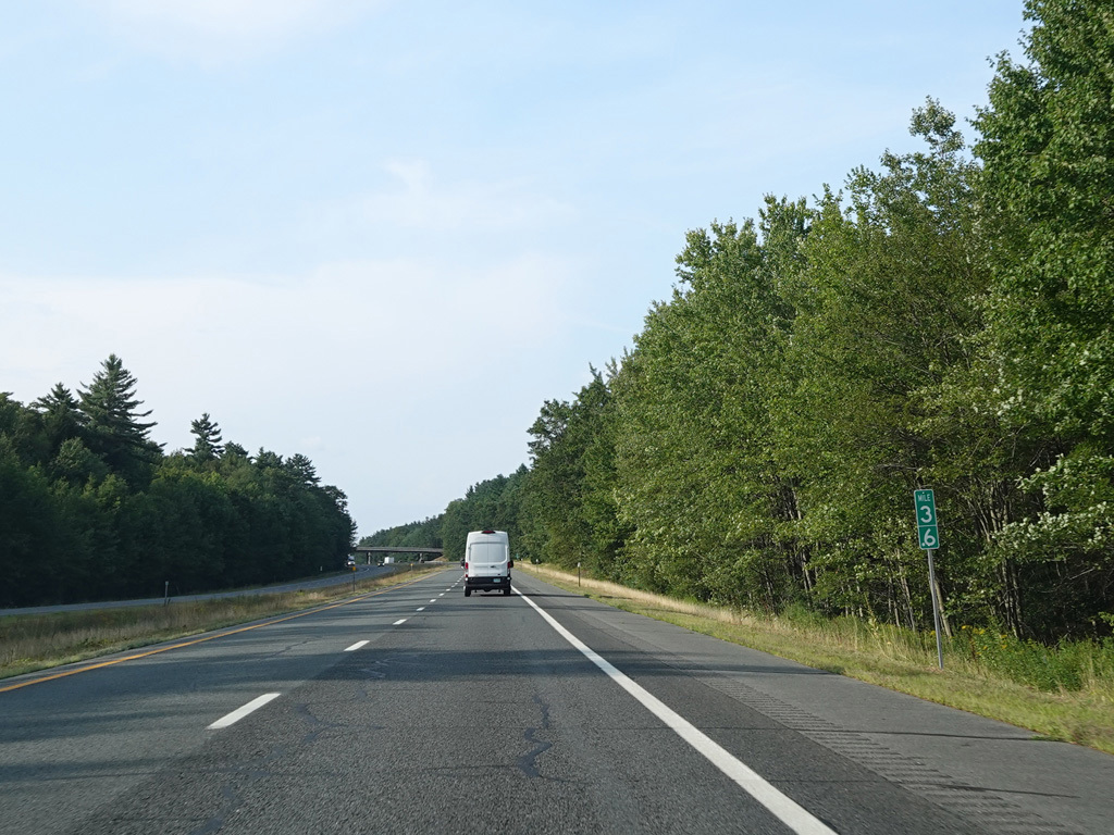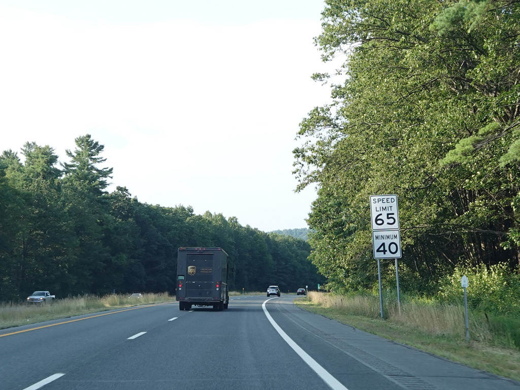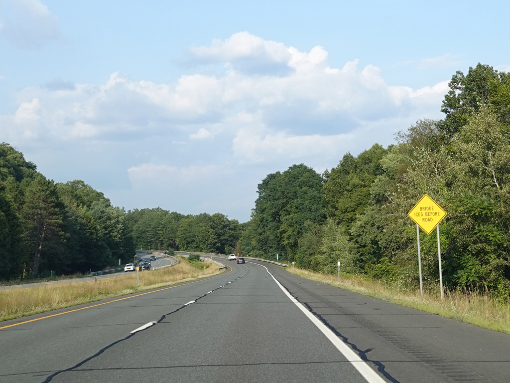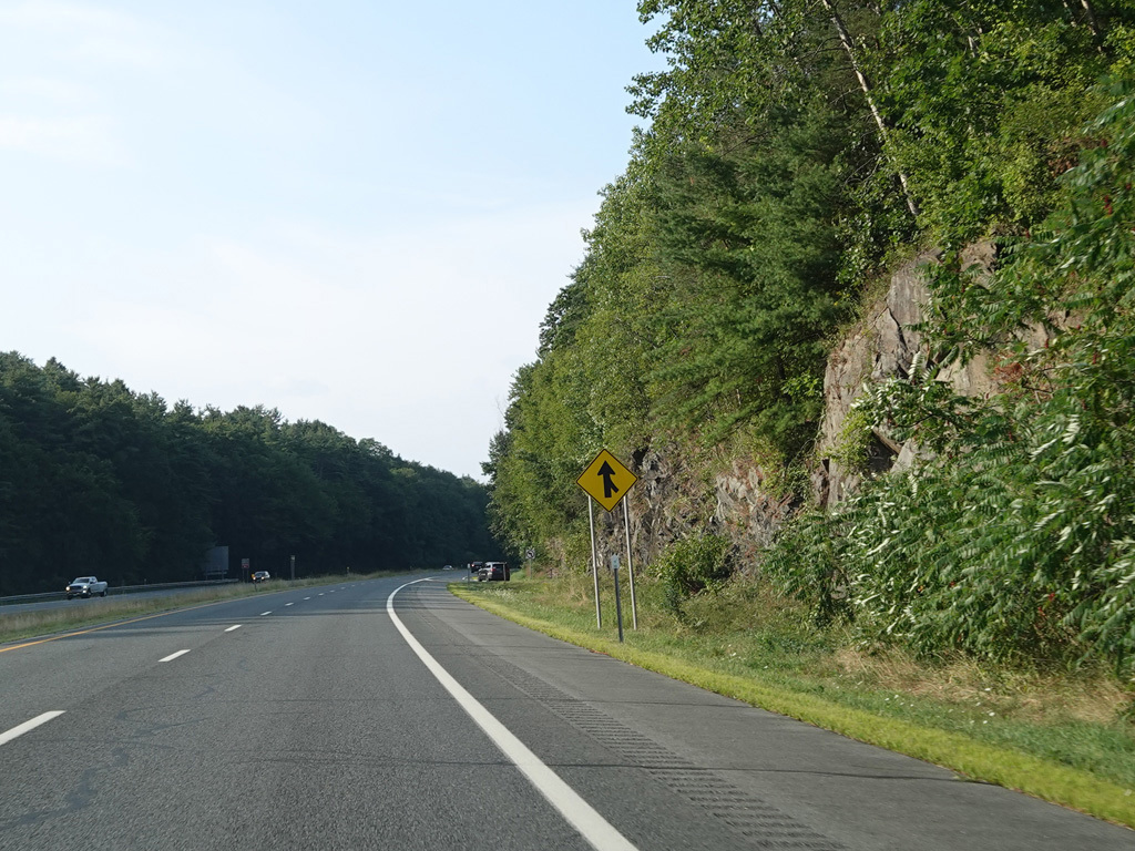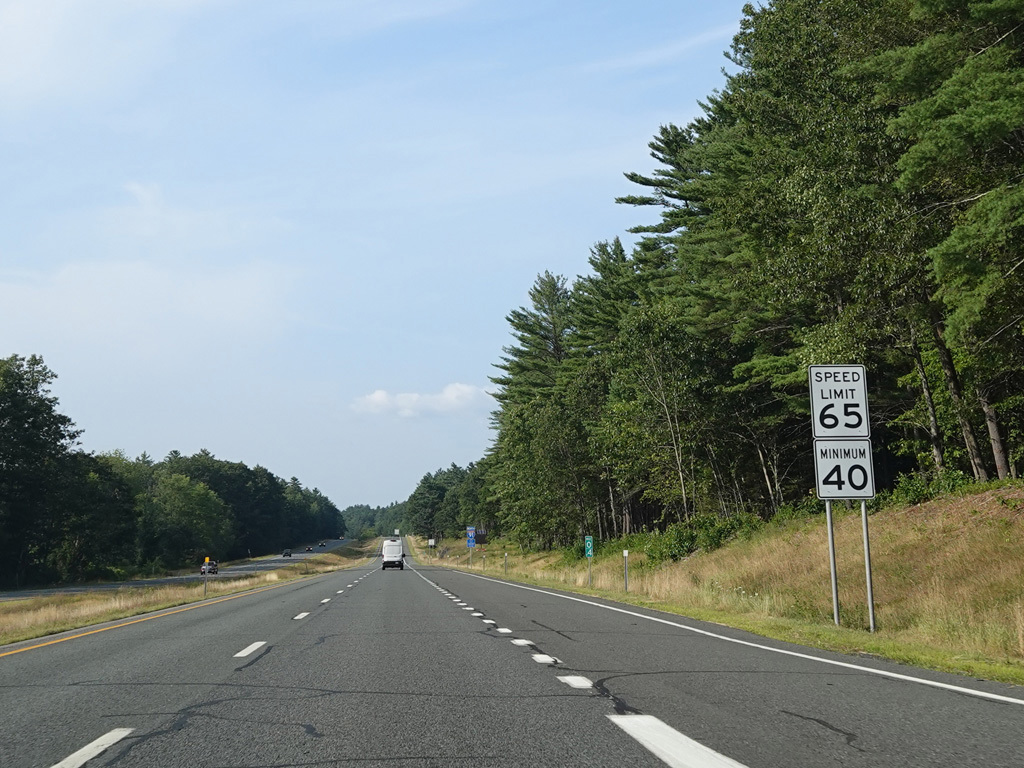 There are no exits for the first few miles in the state. There is signage in this area for various state laws, such as those on seatbelts, drunk driving, and cell phone use.