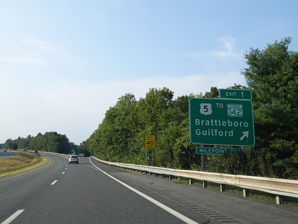 Exit 1 is for Canal Street (US 5) and Vernon Street (VT 142).