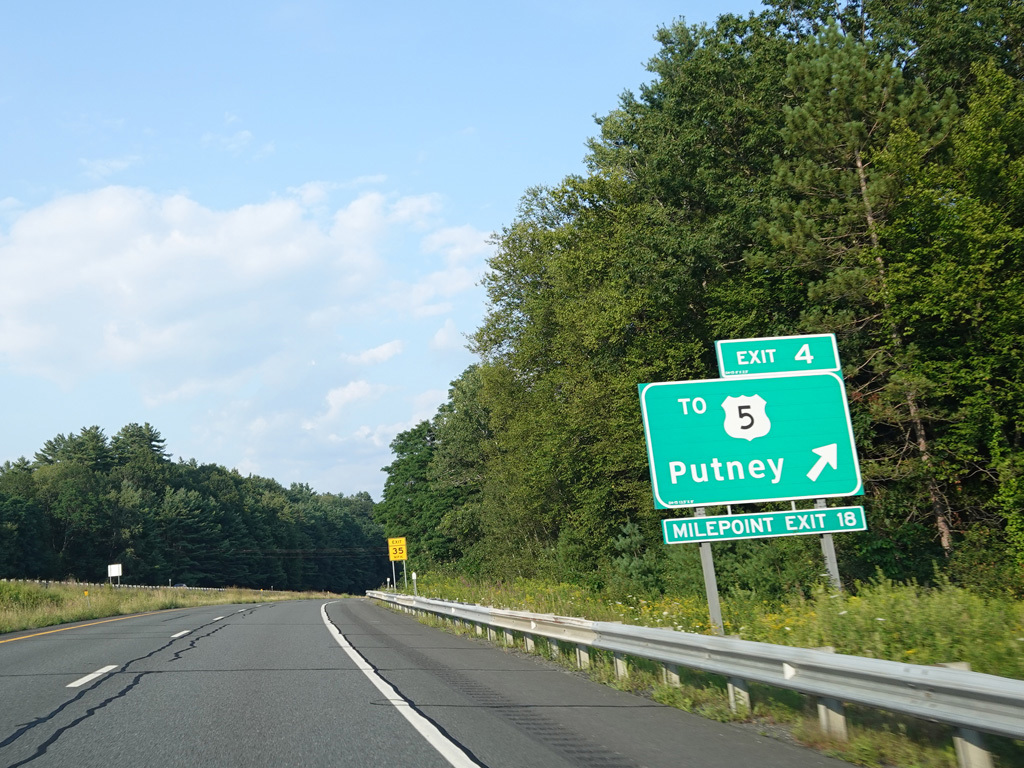 Exit 3 is for Putney Road (US 5) and Chesterfield Road (VT 9) east.