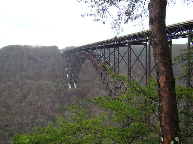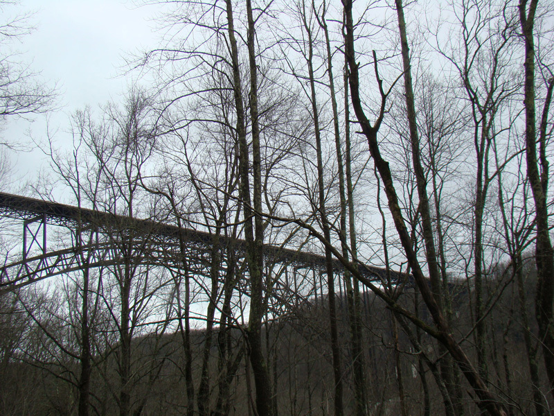 These pictures show the New River Bridge as observed from various other points along Fayette Station Road (CR 82).