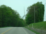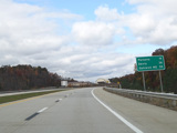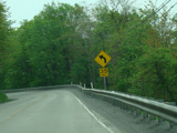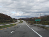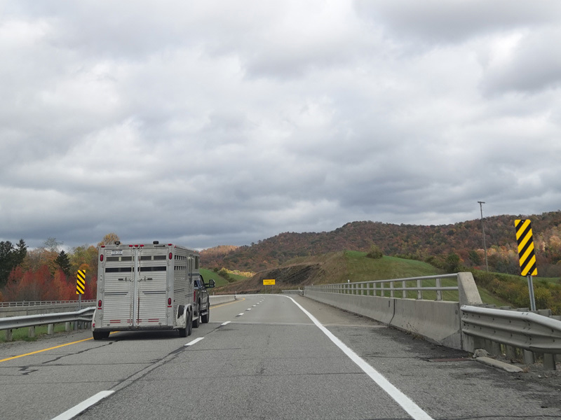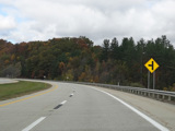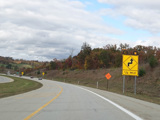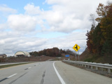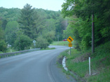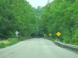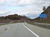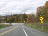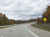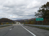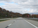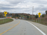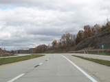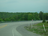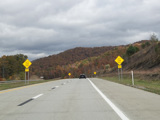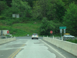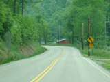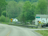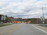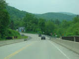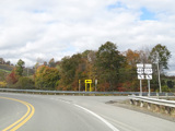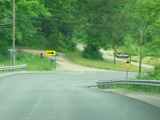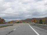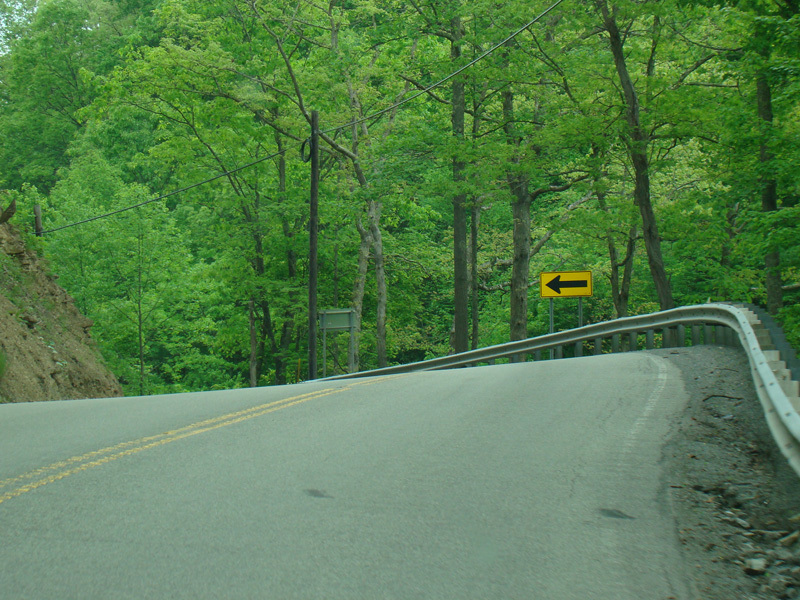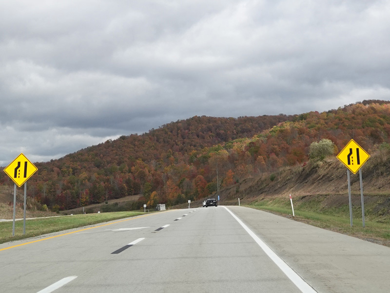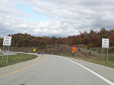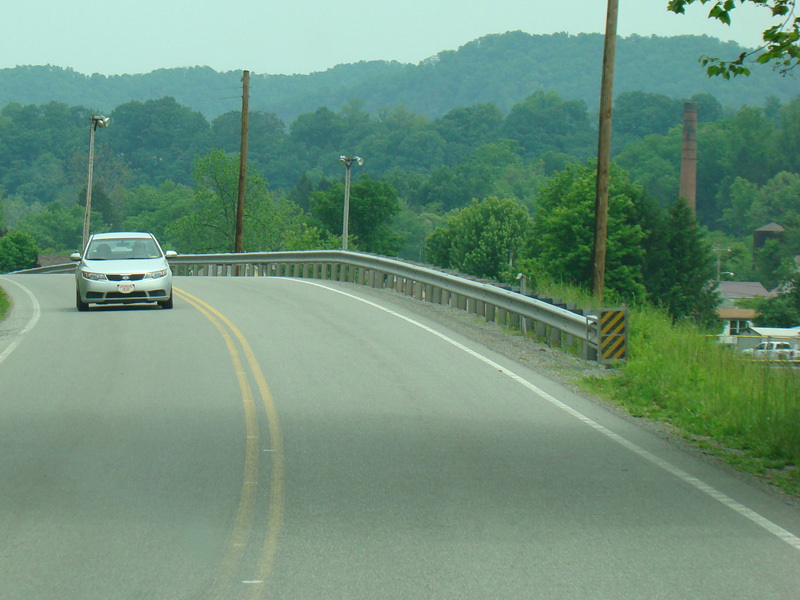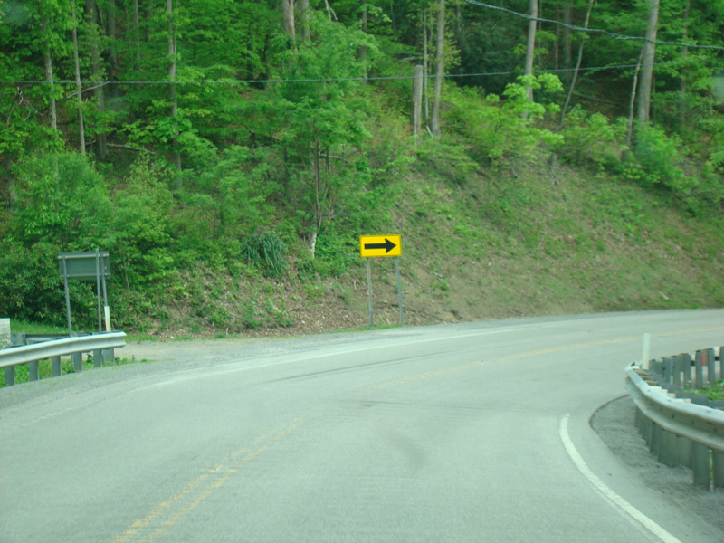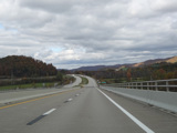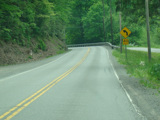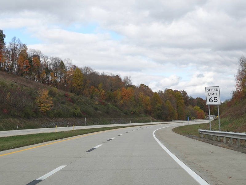 The western section of Corridor H ends here. Turn right to stay on US 48/US 219. Straight ahead, there is a bridge that has been constructed but not yet opened to traffic.