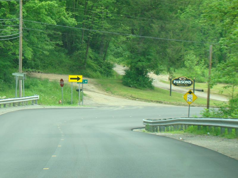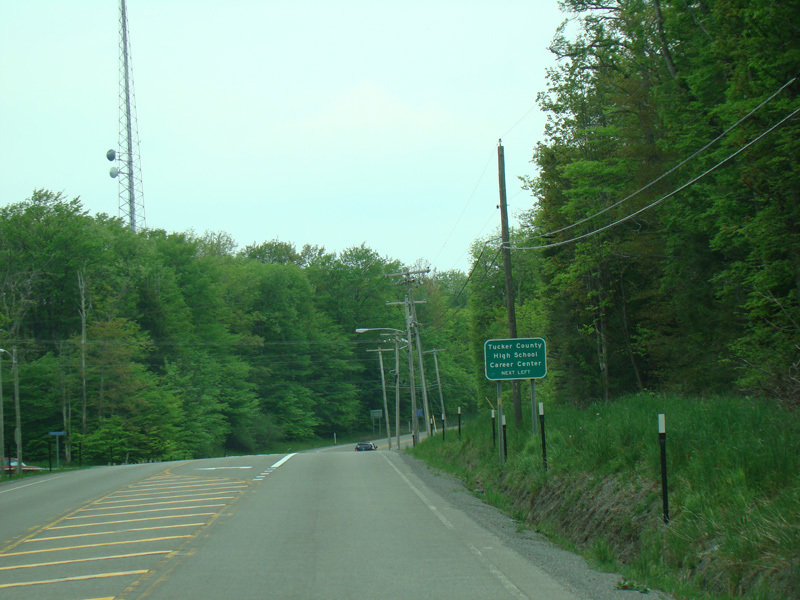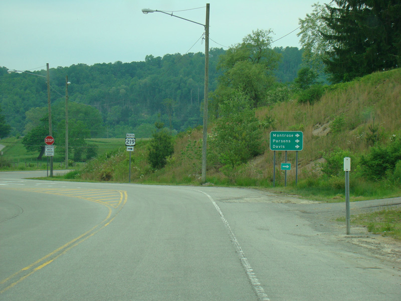 US 219 takes over Corridor H in Elkins where US 33 splits off from it. Gilman Road (CR 1) begins on the left at an uncontrolled at-grade intersection.