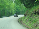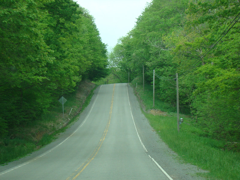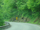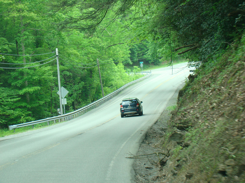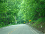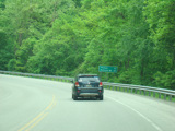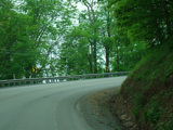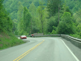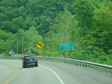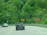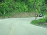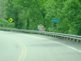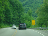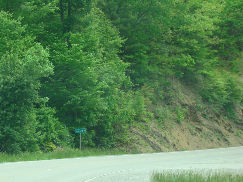 Welcome to Tucker County! The county line is at the peak of the mountain. Seneca Trail now begins to head back down.