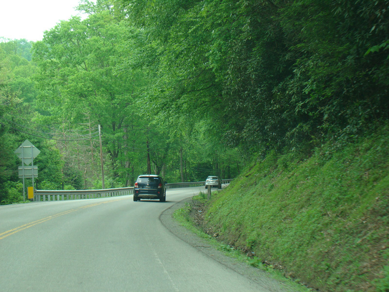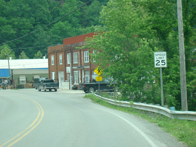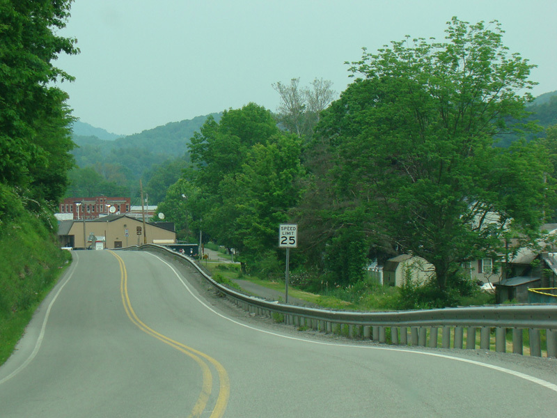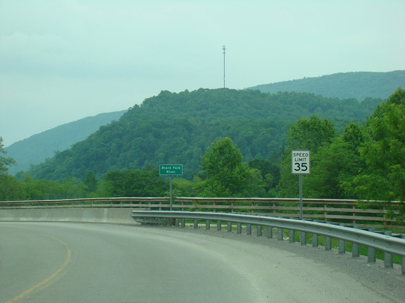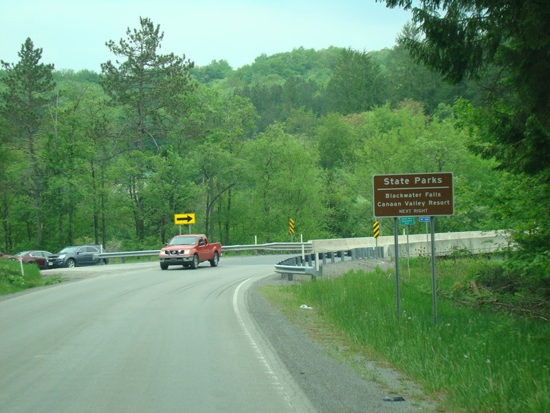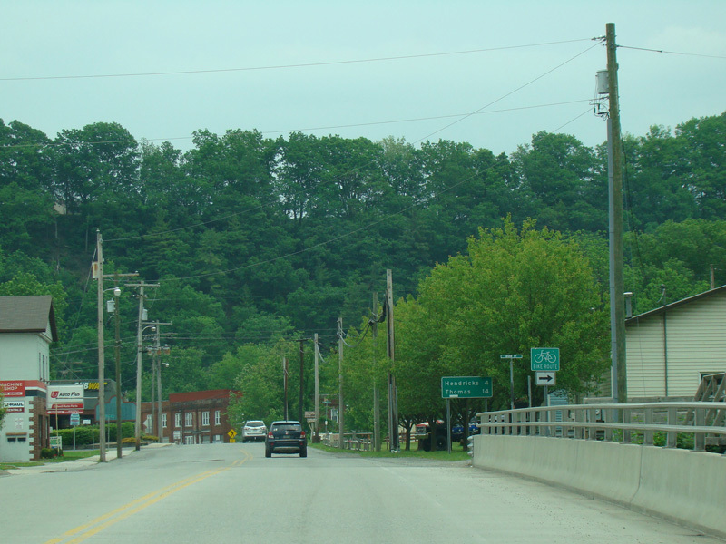 Welcome to Thomas! There is a bridge over the North Fork of the Blackwater River, followed by a stop sign. Appalachian Highway (WV 32) begins on the right. Turn left to continue on Seneca Trail and stay on US 219.
