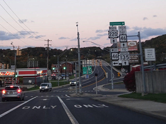 US 220 is a north/south route extending from Rockingham, North Carolina, to South Waverly, Pennsylvania, along the border with New York. It enters West Virginia from Virginia north of Monterey. It runs north to Franklin, where it is multiplexed with US 33 west for a short distance before splitting off to the north. It follows Petersburg Pike and Franklin Pike north to Petersburg, where it is joined by WV 28 and WV 55 as it turns east onto Virginia Avenue. After a few miles, it curves back to the north toward Moorefield, where it has an interchange with Corridor H (US 48). WV 55 splits off to join US 48 along Corridor H at this point. US 220/WV 28 continues north as Purgitsville Pike, which ends at US 50. There, the two routes split. WV 28 follows US 50 east to Romney, while US 220 follows it west for a few miles before splitting off onto Cut Off Road. After a short distance, Cut Off Road ends at the northern terminus of WV 93. US 220 turns north onto New Creek Highway, which is designated WV 93 to the south of this point. After a few miles, New Creek Highway comes into Keyser, where it changes names to become South Mineral Street and the North Mineral Street. It leaves the city by crossing a bridge over the Potomac River to Maryland.