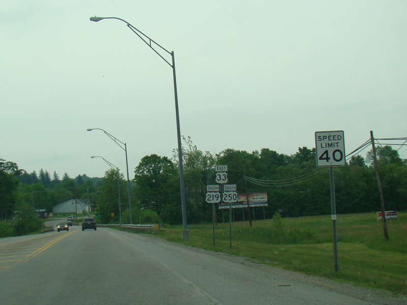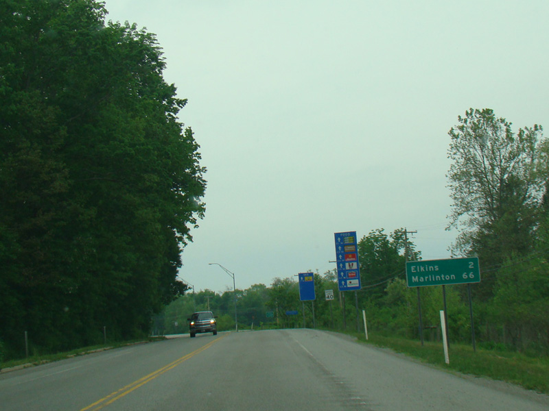 US 33/US 219/US 250 leaves Corridor H and runs south toward Elkins along North Randolph Avenue, a two-lane undivided road.