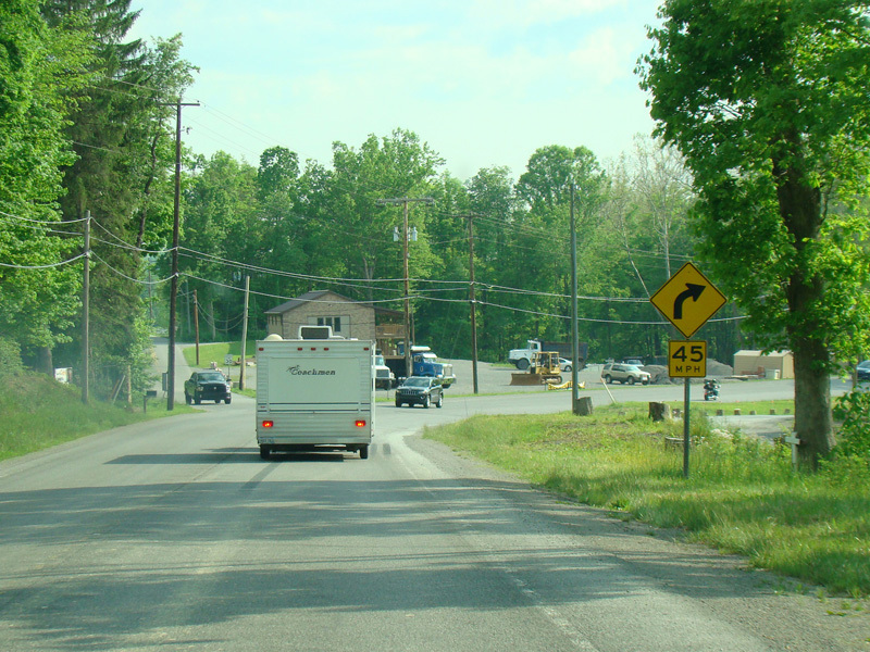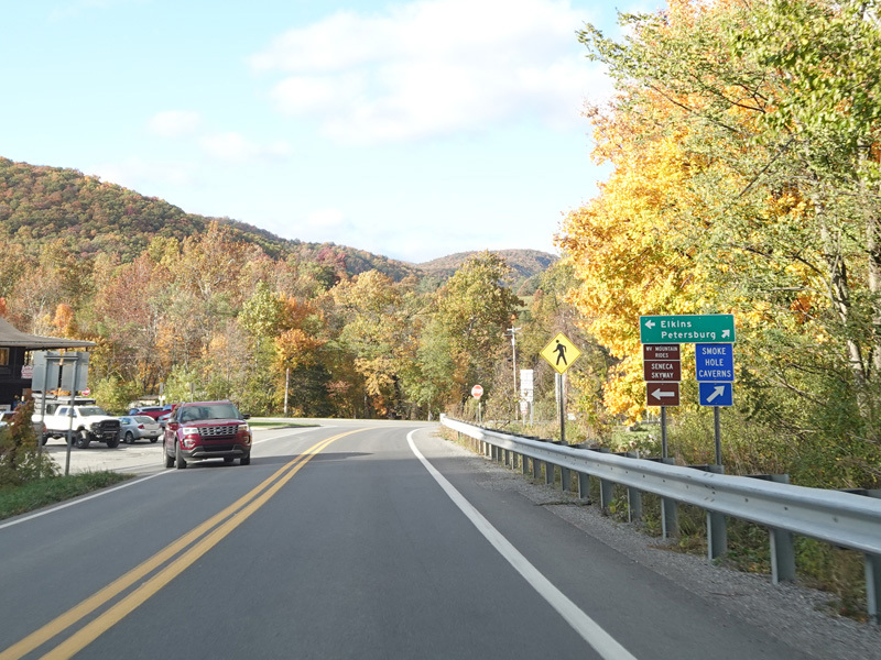 The highway ends, and US 33/WV 55 narrows down to two lanes again. The speed limit drops to 45 MPH coming into Elkins.
