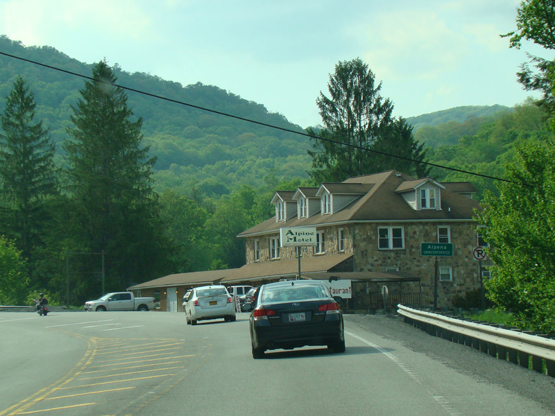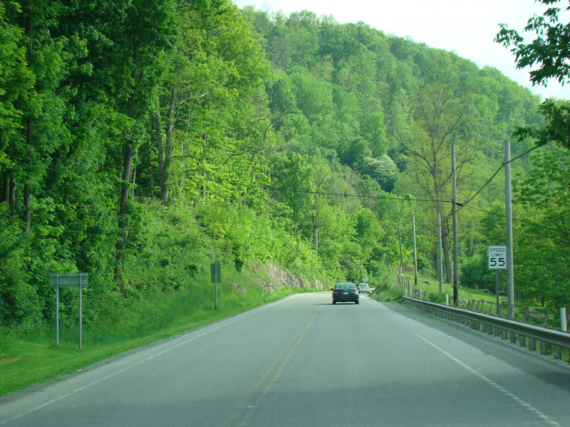 Skipping a few miles, US 33/WV 55 runs west as a two-lane undivided road, winding its way through the mountains. There is a small town called Alpena, but otherwise the surroundings are very rural along this stretch.