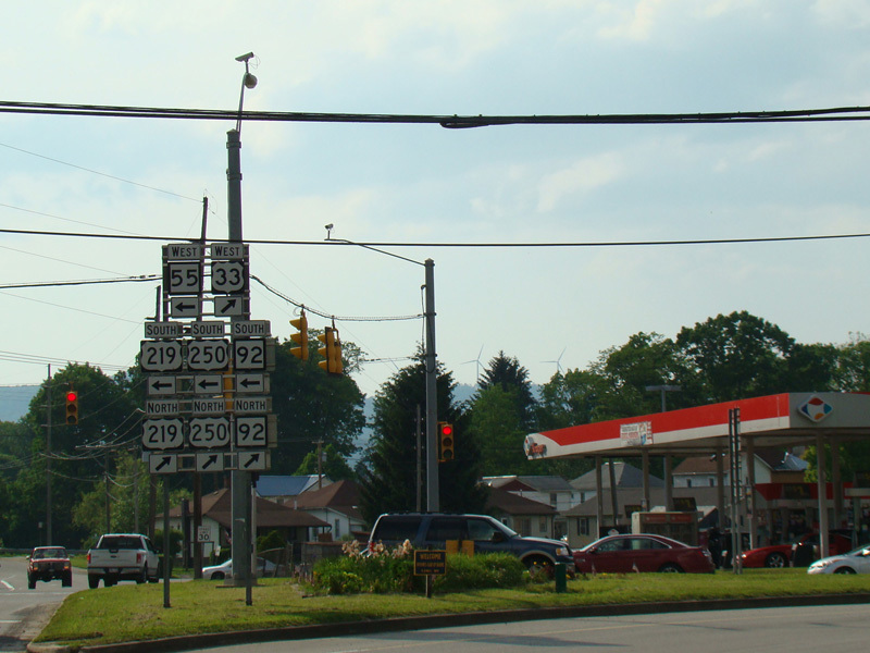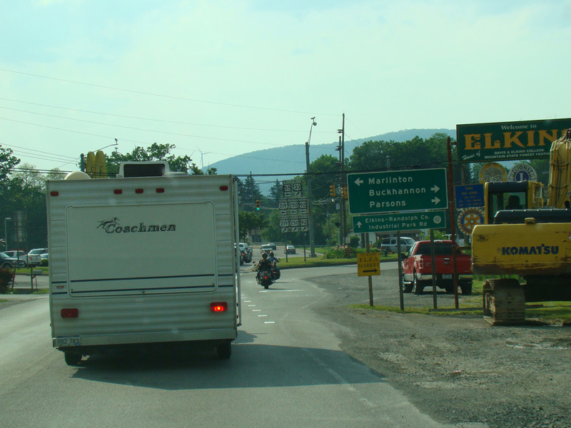 US 33 is multiplexed with US 219/US 250/WV 92 along Seneca Trail and with US 219/US 250 along North Randolph Avenue through Elkins to the western section of Corridor H.