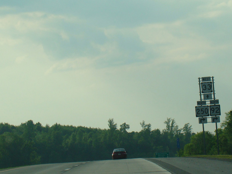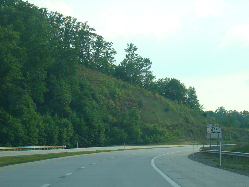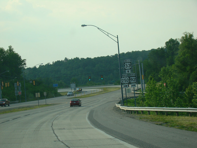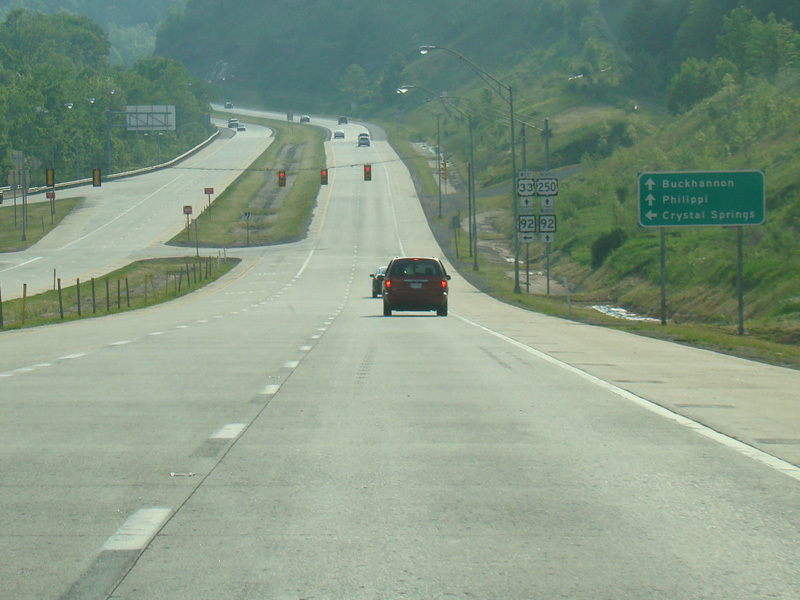 US 250/WV 92 splits off to the right as Junior-Philippi-Grafton Road at a traffic light. Corridor H continues straight ahead as US 33 alone.