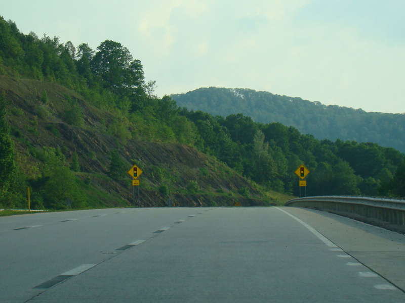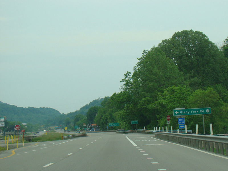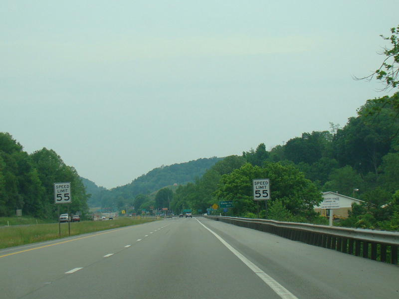 Approaching the end of Corridor H, the speed limit drops to 55 MPH. There are at-grade intersections at Glady Fork Road (CR 119/18) and Grass Run Road (CR 33/3).