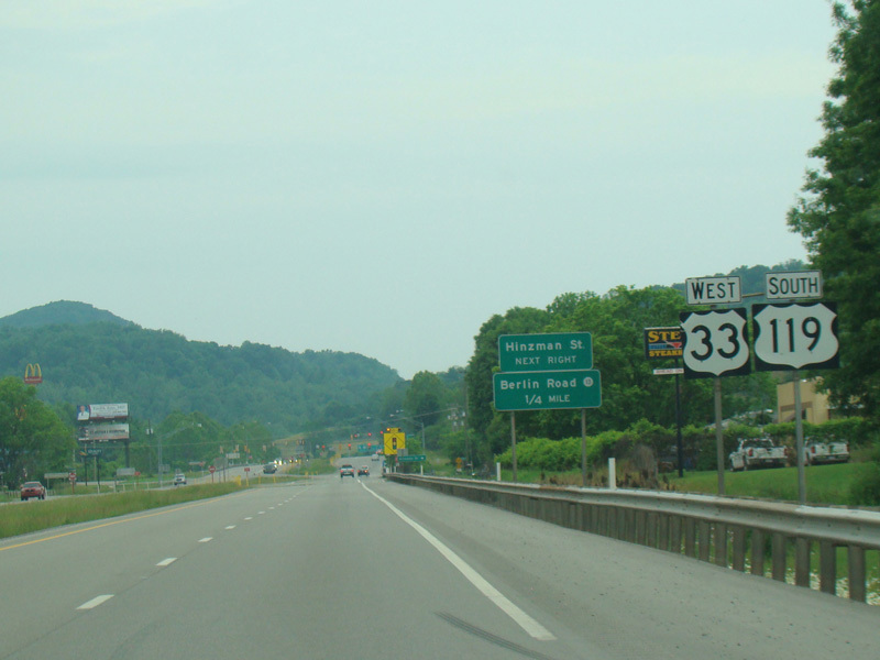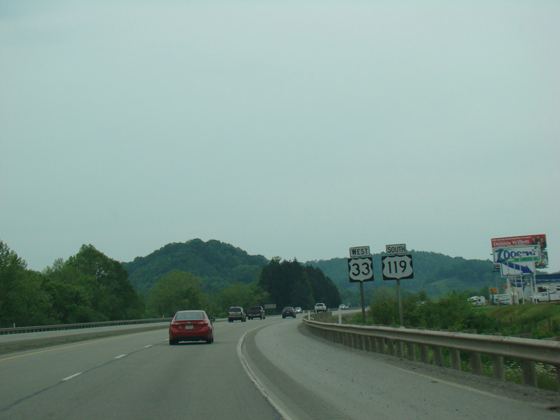 Skipping west to Buckhannon, US 119 is multiplexed with US 33 along Corridor H. There is a traffic light at Brushy Fork Road (CR 7).
