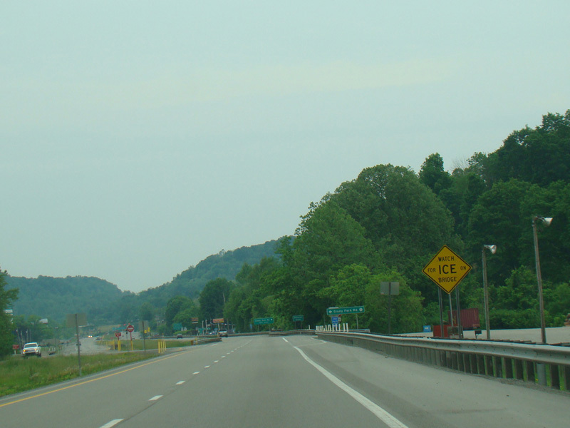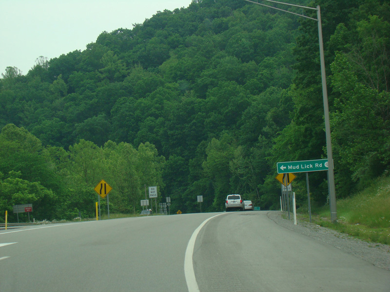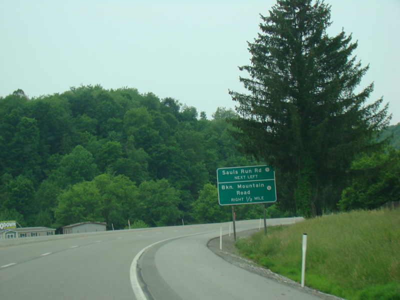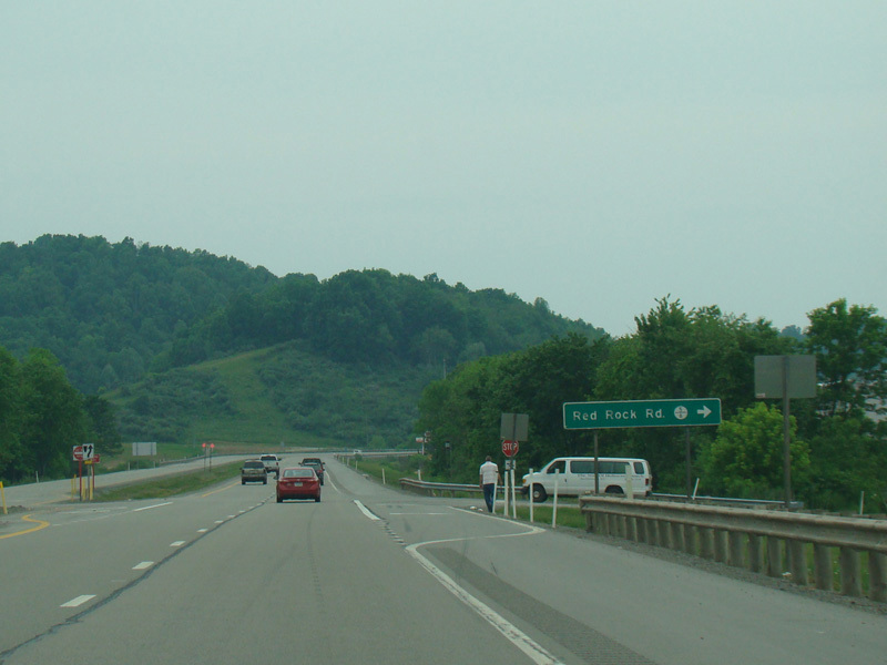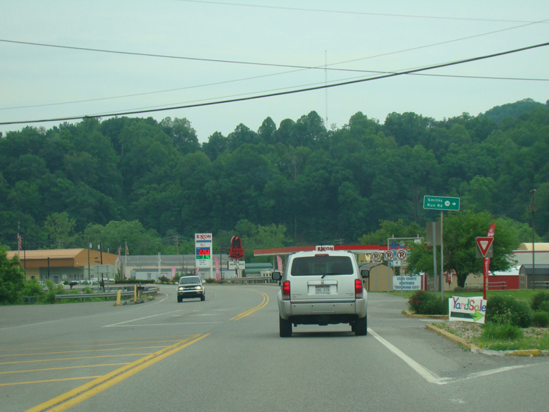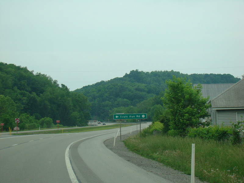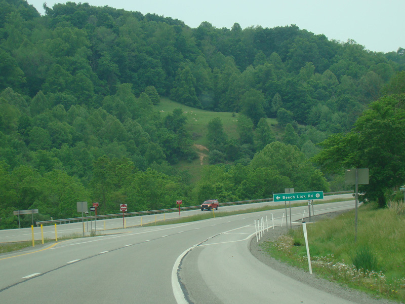 Along this stretch, there are uncontrolled at-grade intersections at WBUC Road (CR 33/2), Red Rock Road (CR 5/6), Fink Run Road (CR 5/5), Sauls Run Road (CR 5/1), Broken Mountain Road (CR 12), Hidden Lane Road (CR 33/4), Sawmill Road (CR 33/15), Tree Farm Road (CR 119/30), Snyder Run Road (CR 34), Honeysuckle Road (CR 33/17), Beech Lick Road (CR 119/24), Wilson Siding Road (CR 119/22), Georgetown Road (CR 15), Horner Road, Sauls Run Road (CR 119/21), Gaston Road (CR 33/3), and Sunset Drive (CR 119/33).
