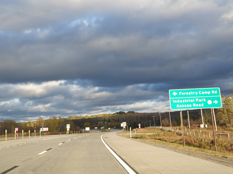 There is an uncontrolled at-grade intersection at Forestry Camp Road and Industrial Park Access Road (CR 93/1).