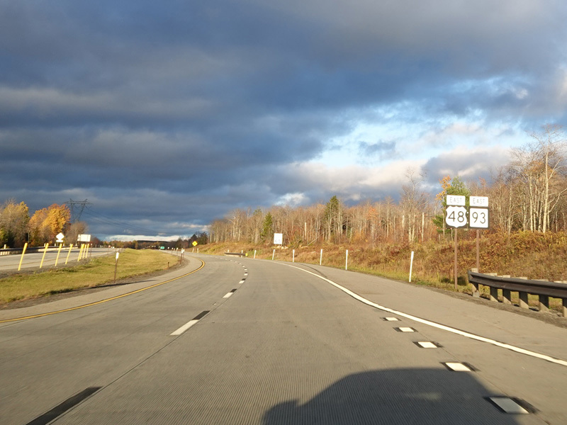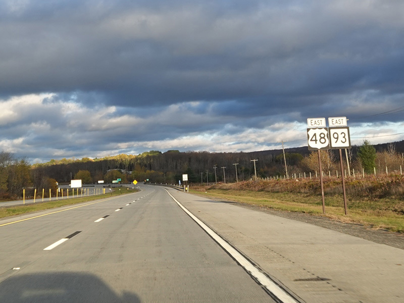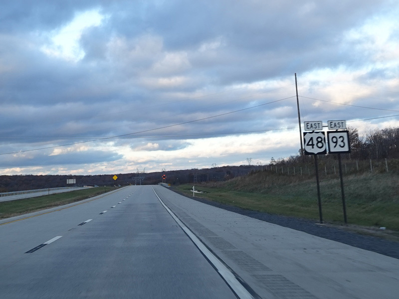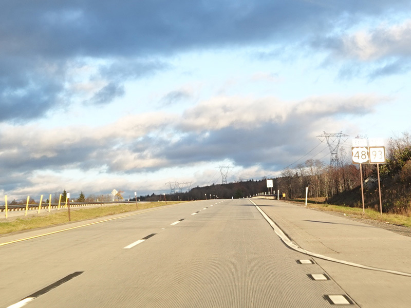 WV 93 splits off to the right onto Power Station Highway. Corridor H continues straight ahead as US 48 alone.