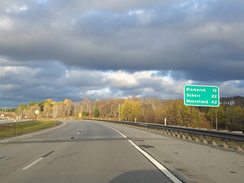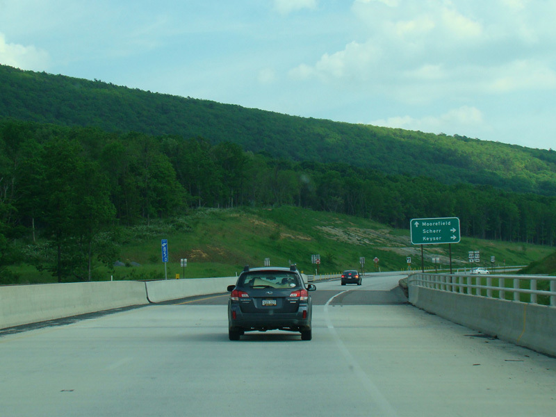 Al Brown Road (CR 90/1) begins on the left as Corridor H crosses the Eastern Continental Divide.