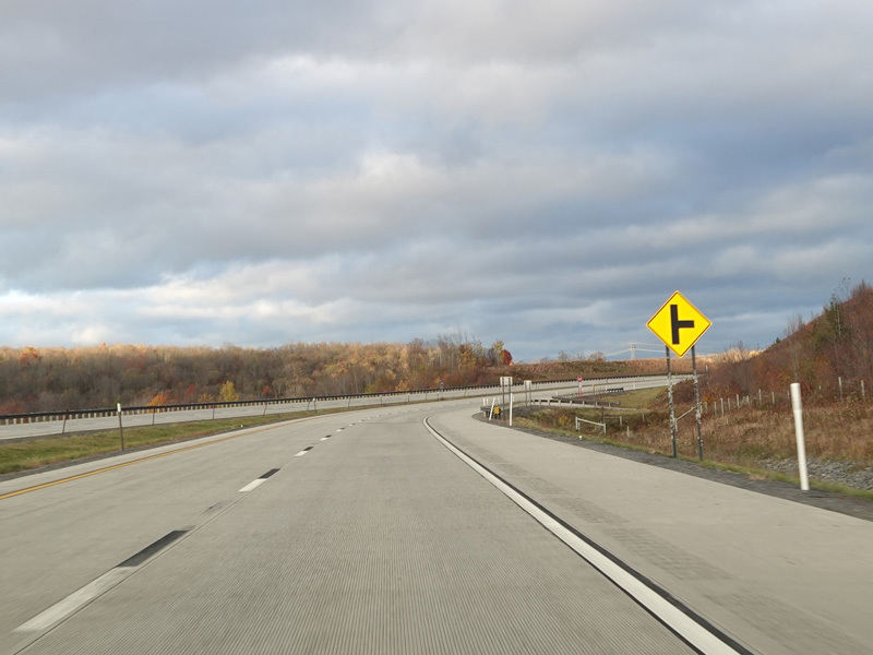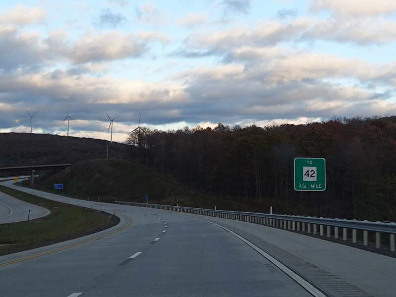 There is an uncontrolled intersection at Communications Drive. Turn left for access to Union Highway (WV 42).