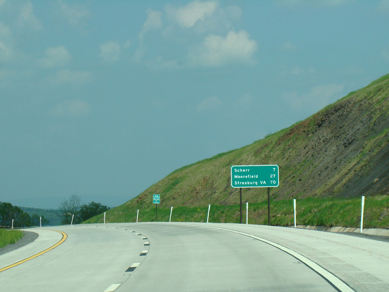 Between the two sections of Corridor H, US 48 is temporarily routed along Parsons Road (US 219), Seneca Trail (US 219), Appalachian Highway (WV 32), and Synergy Highway (WV 93).