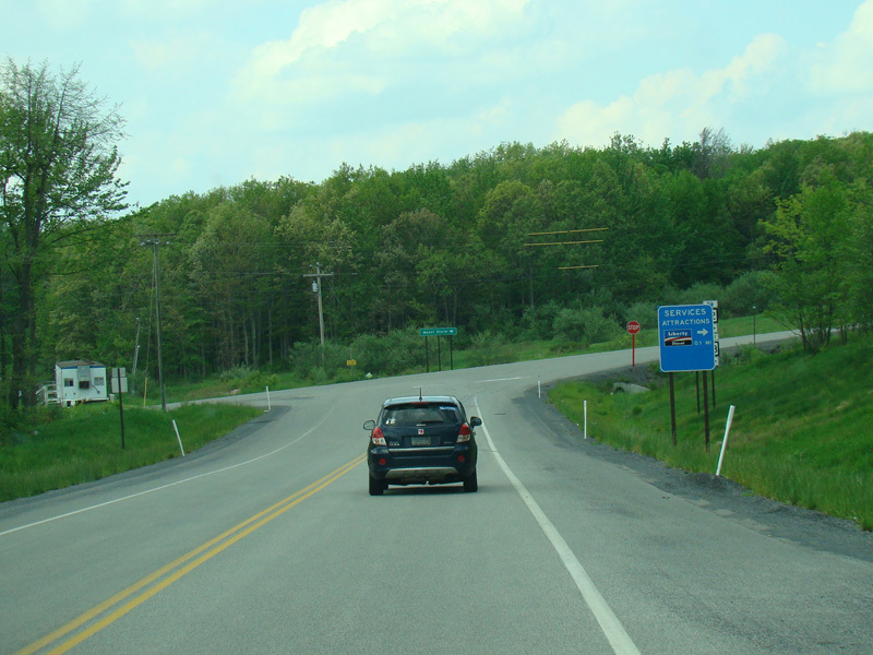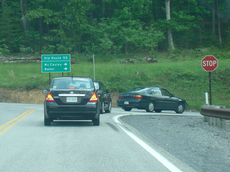 The turnoff for Old Route 55 and McCauley Road leads to this short roadway, which ends at a stop sign at Old Route 55.