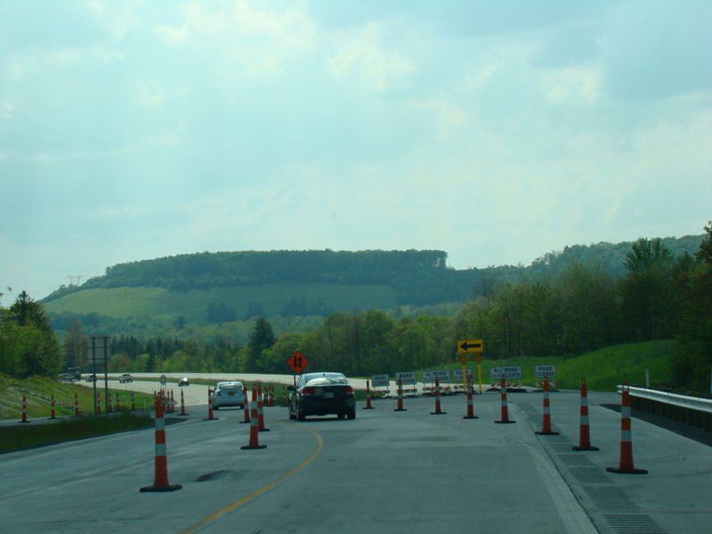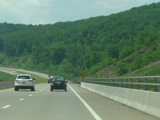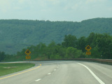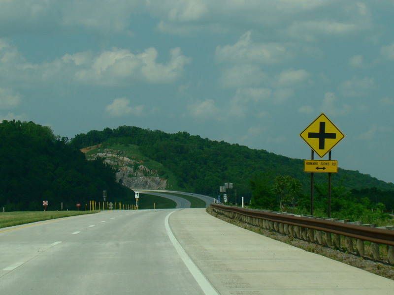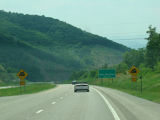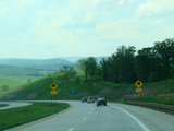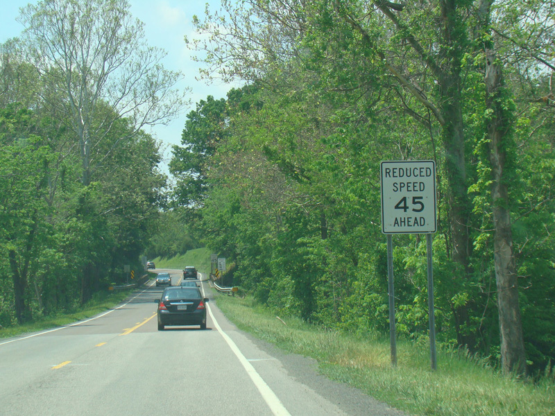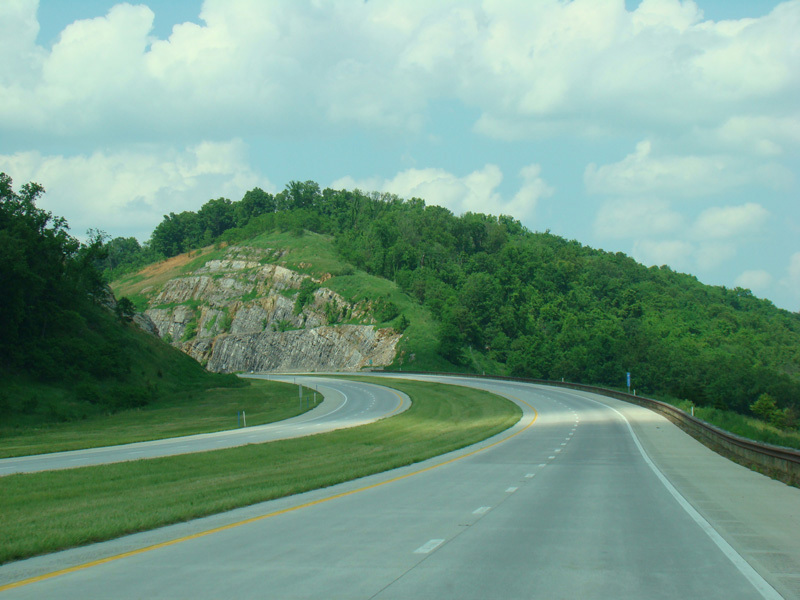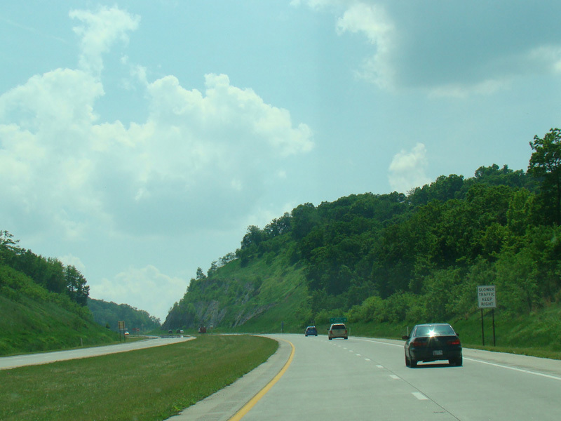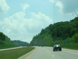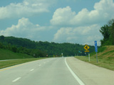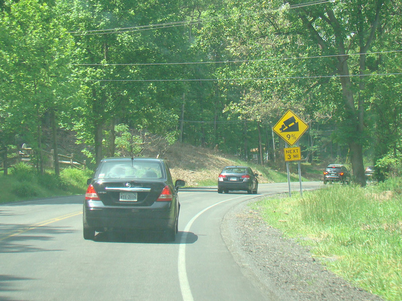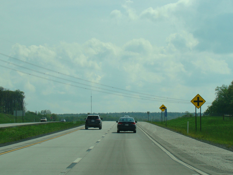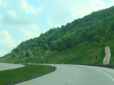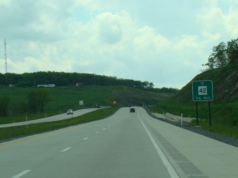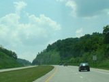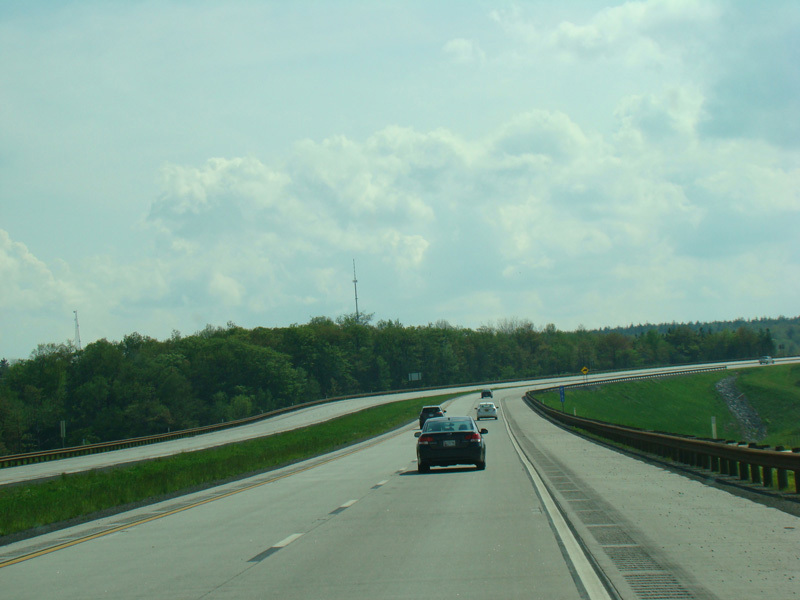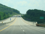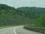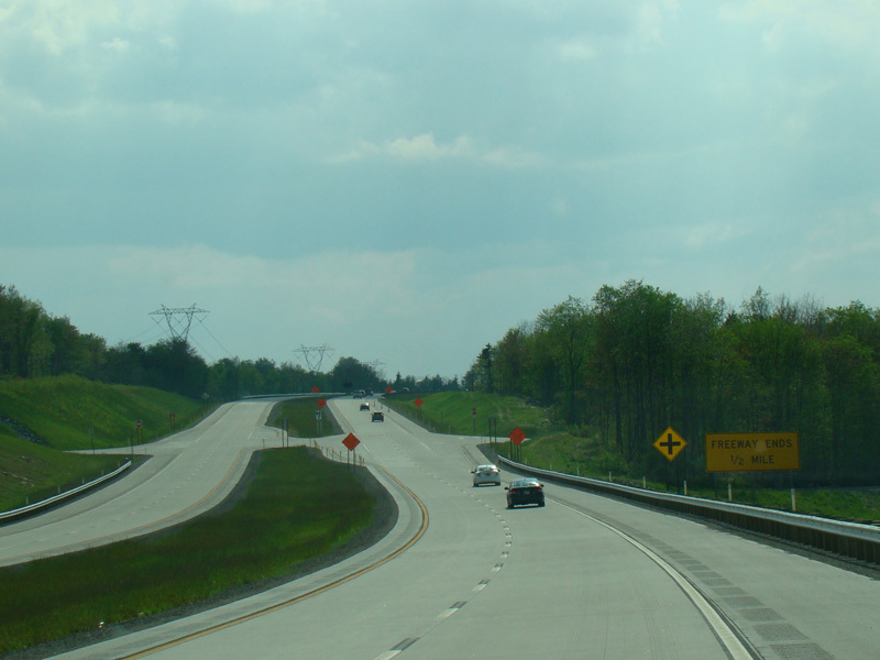 There are some at-grade-intersections along this stretch, including at Thorn Run Road (CR 5/4) and Knobley Road (CR 3), as well as some cliffs.