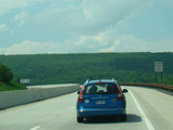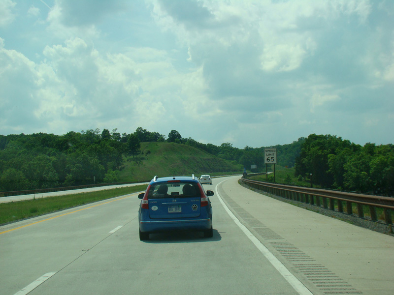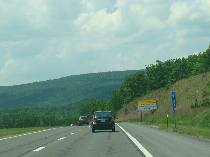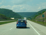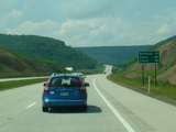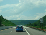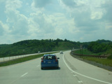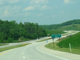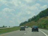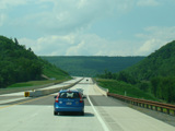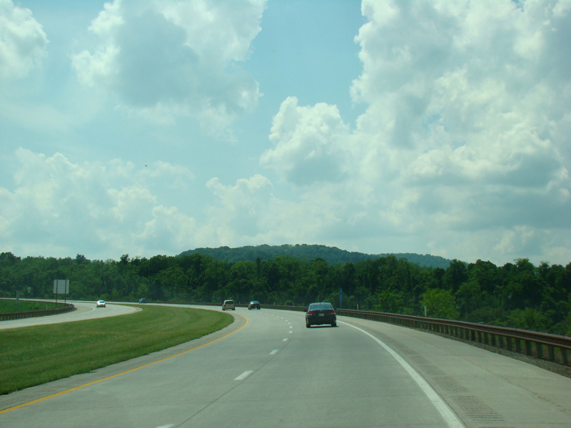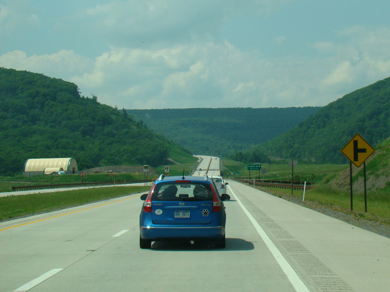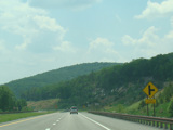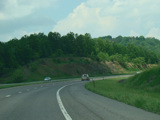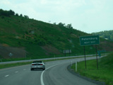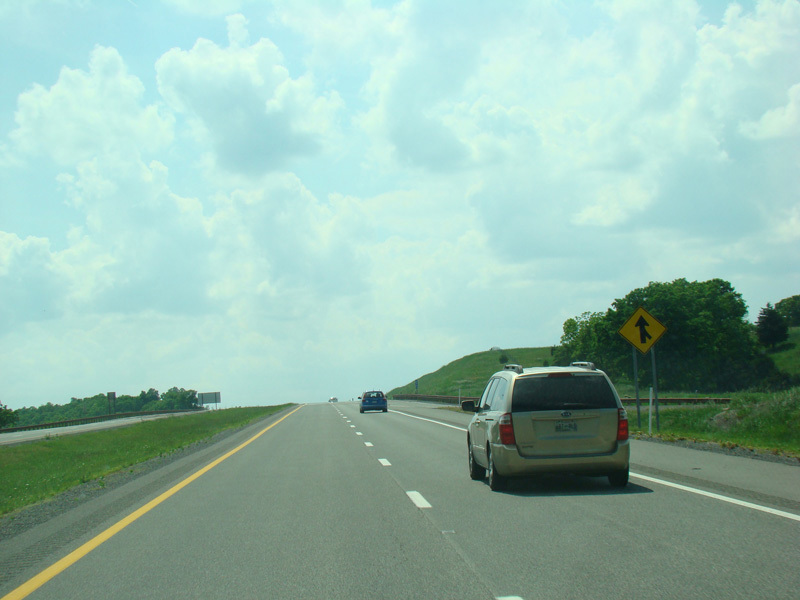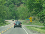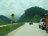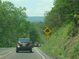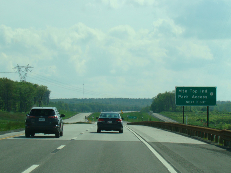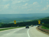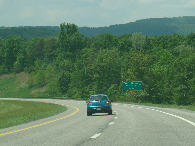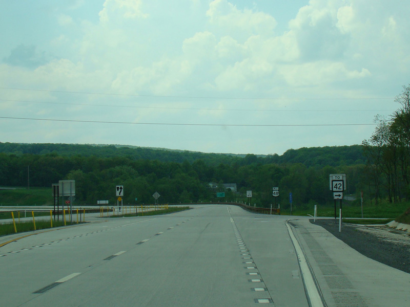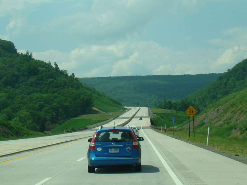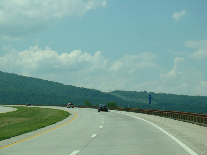 There are some at-grade-intersections along this stretch, including at Thorn Run Road (CR 5/4) and Knobley Road (CR 3), as well as some cliffs.