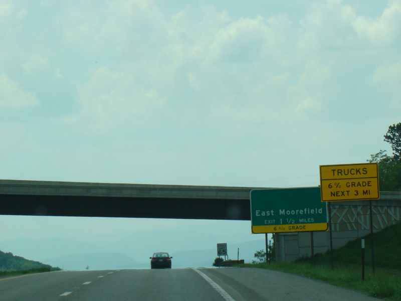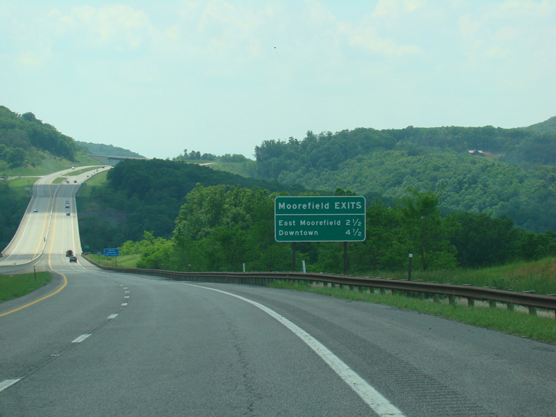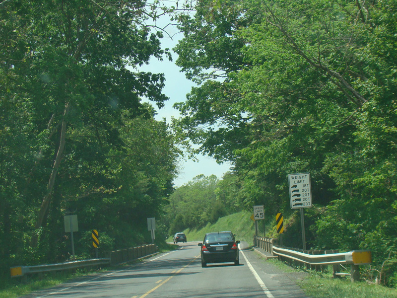 Approaching Moorefield, there is a bridge over Clifford Hollow, followed by a scenic overlook on the left.