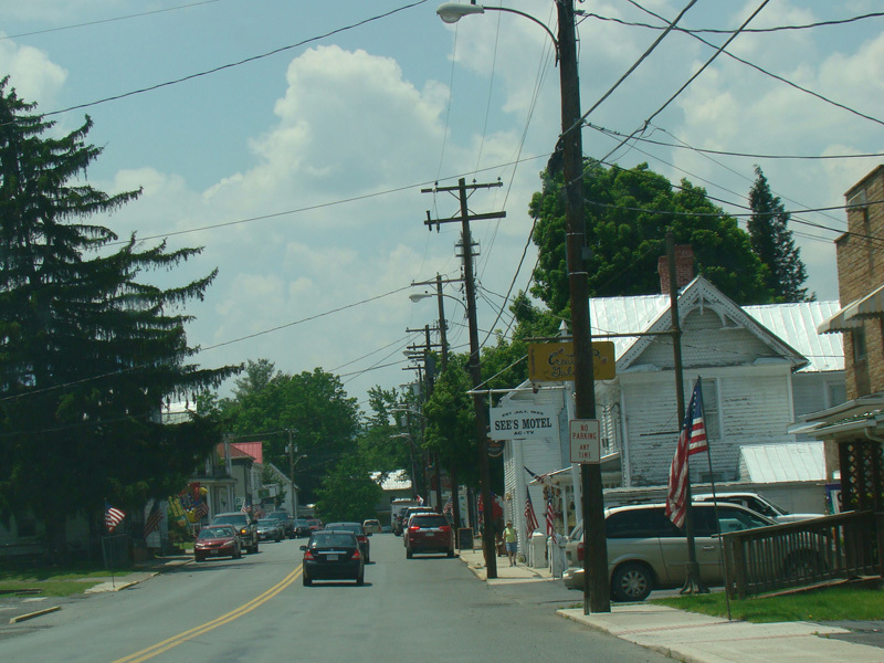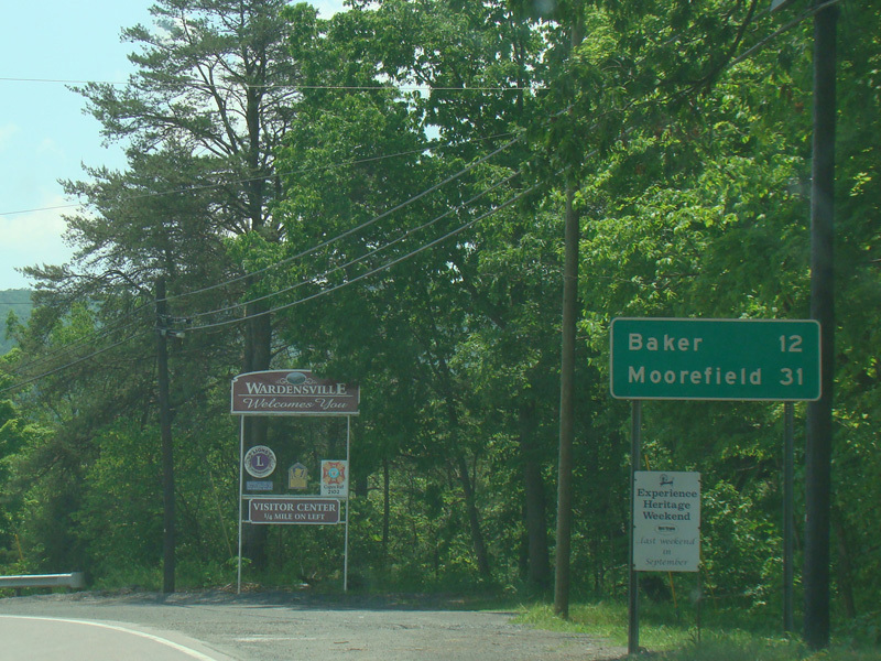 Welcome to Wardensville! WV 259 is multiplexed with US 48/WV 55 beginning here. The section in Wardensville is known as West Main Street and East Main Street. The speed limit drops to 25 MPH in town.