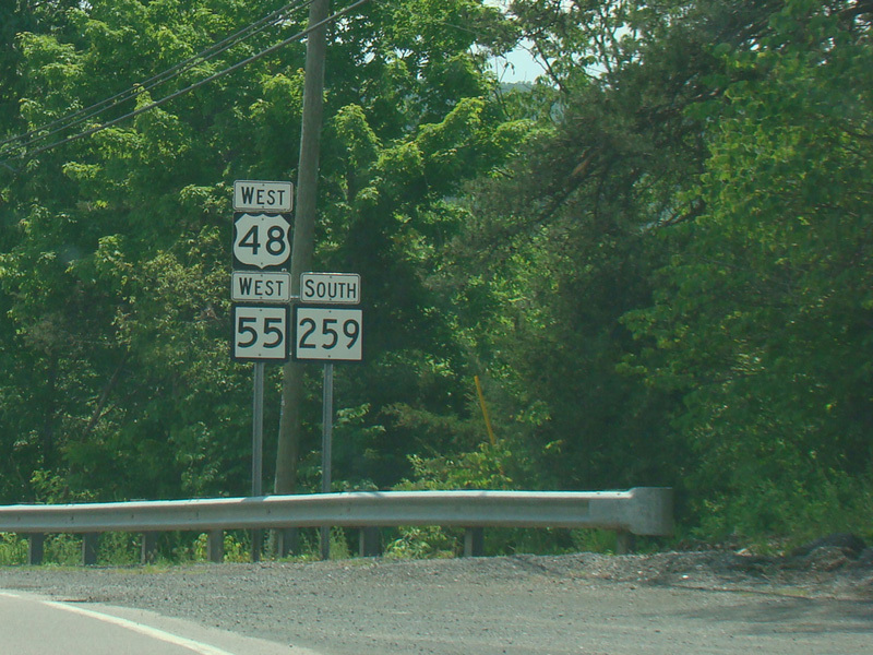 There is a stop sign at WV 259. Turn left to go south and to stay on US 48/WV 55. Continue straight ahead to go north.