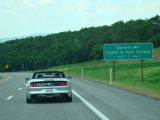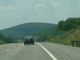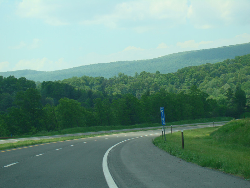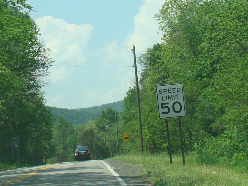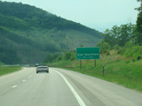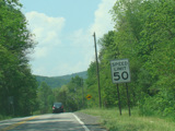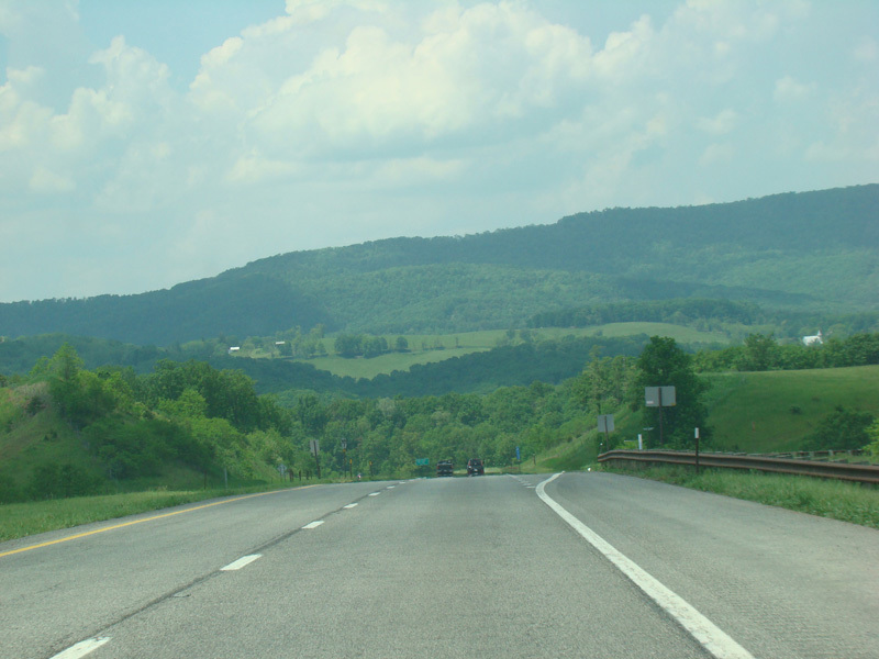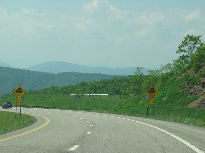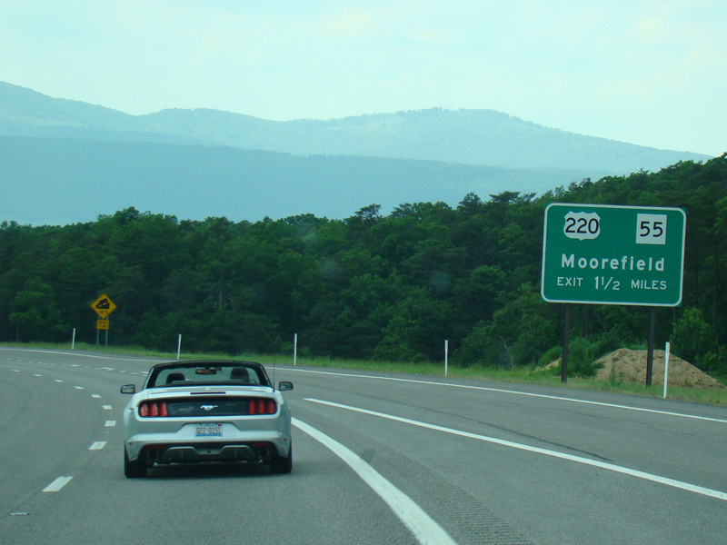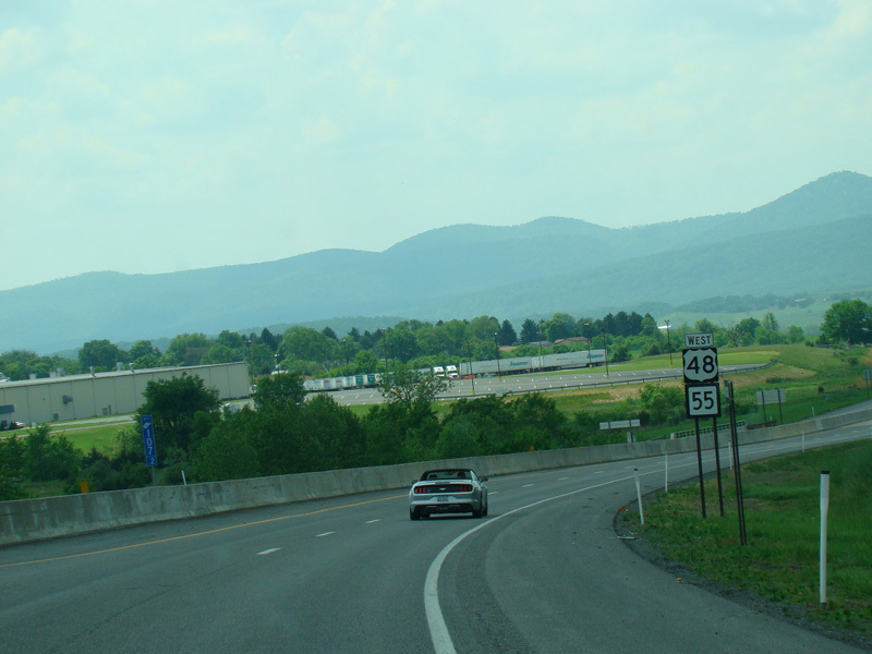 Welcome to West Virginia and to Hardy County! VA 55 becomes WV 55 at the state line and remains multiplexed with US 48. The state line is located at the summit of Great North Mountain. US 48 descends the west side of the mountain. Old Strasburg Road (CR 55/1) begins on the right along this stretch.