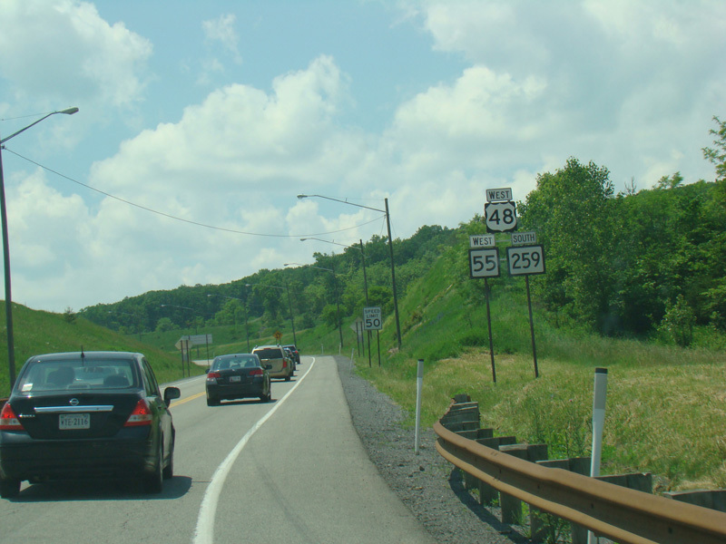 There is an exit for WV 29 and WV 259 south, which splits off from US 48/WV 55 here.