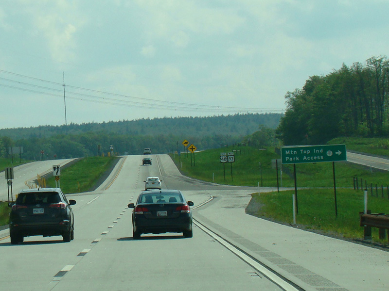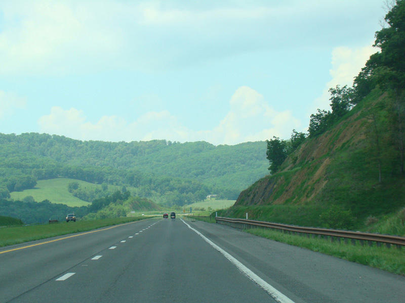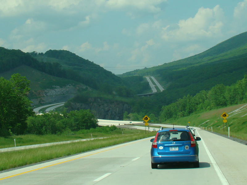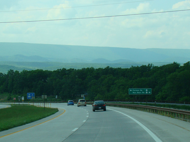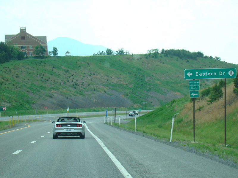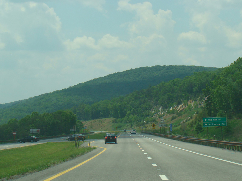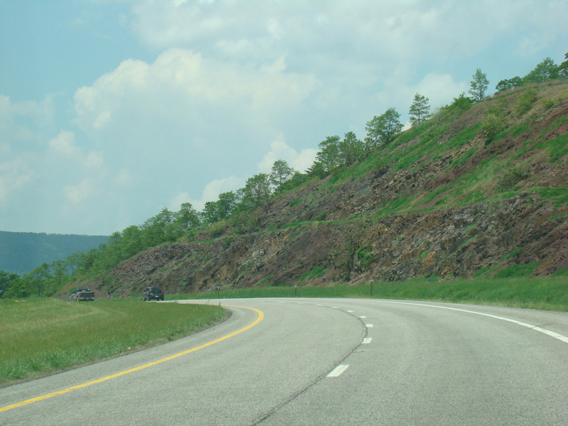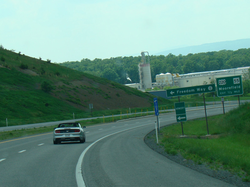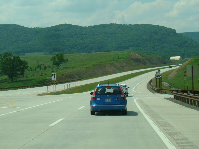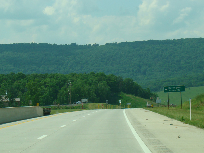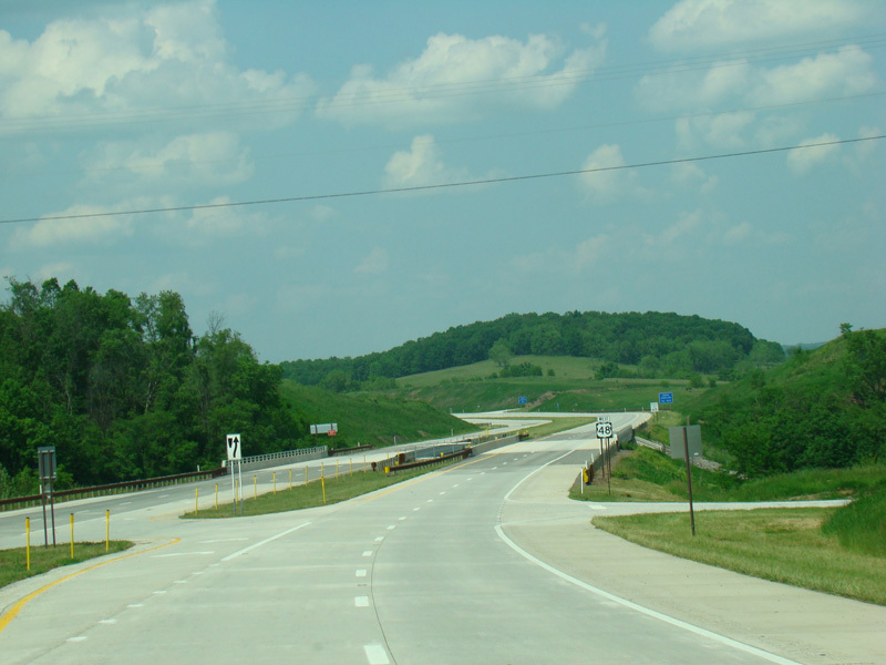 Corridor H is now just US 48. There are a few at-grade intersections along this stretch, including at Darlington School Road, Howard Sions Road, and Fish Pond Road (CR 220/8), as well as some cliffs.