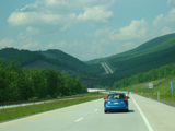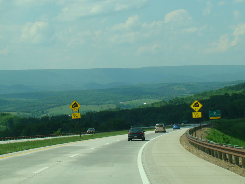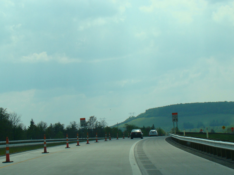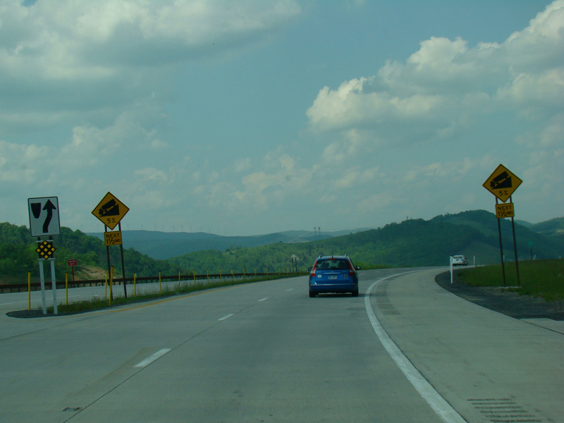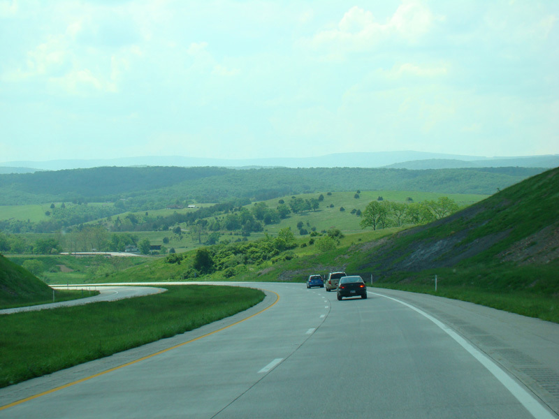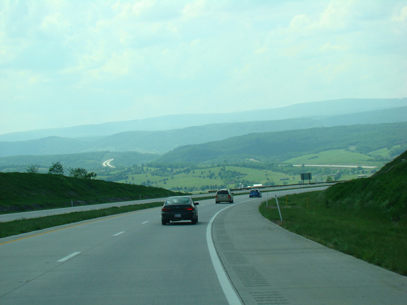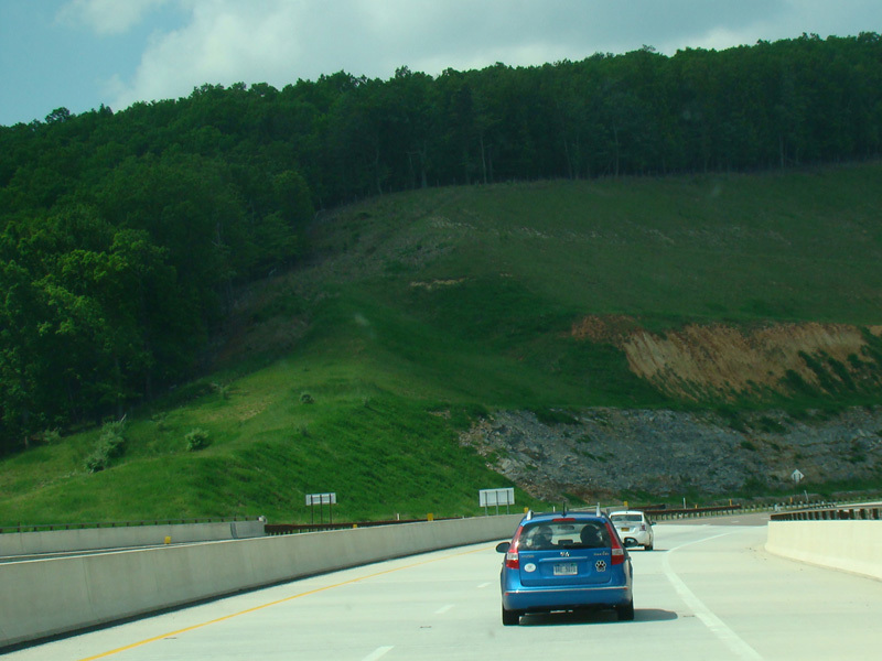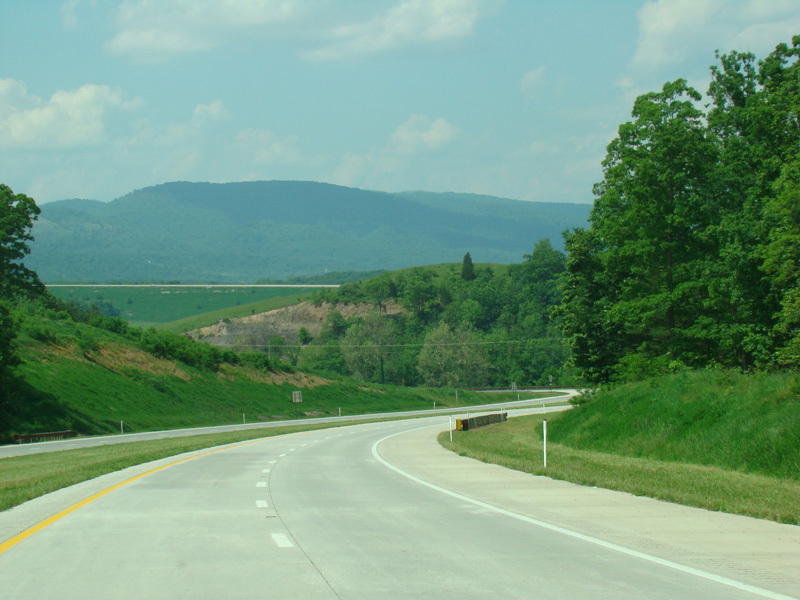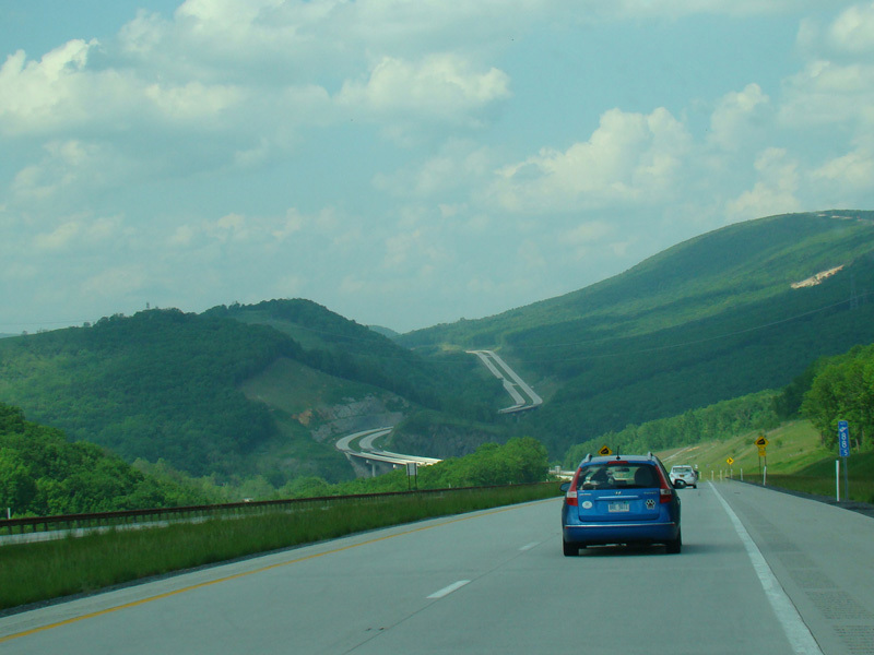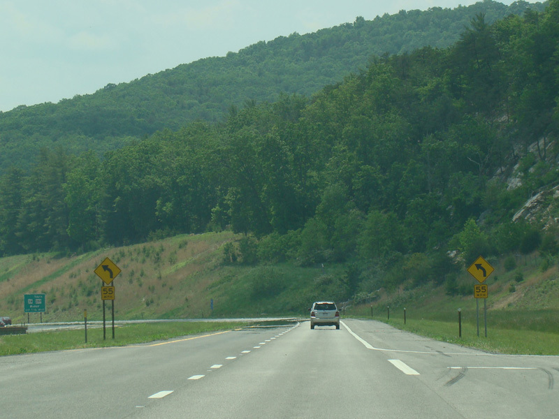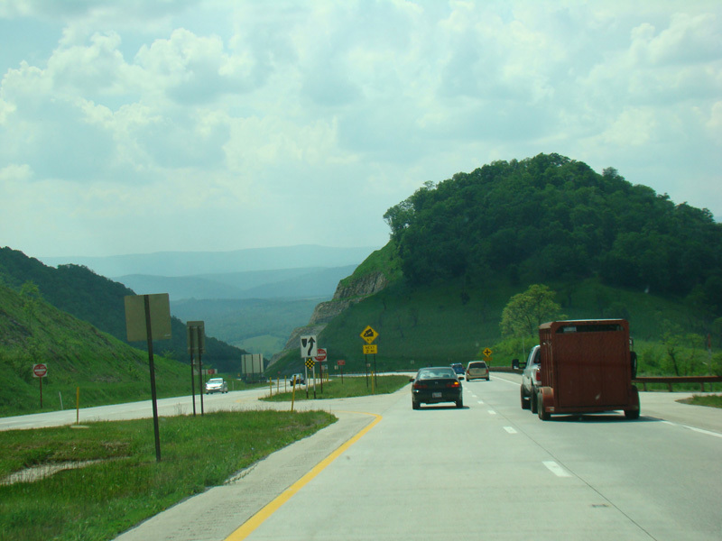 Corridor H is now just US 48. There are a few at-grade intersections along this stretch, including at Darlington School Road, Howard Sions Road, and Fish Pond Road (CR 220/8), as well as some cliffs.